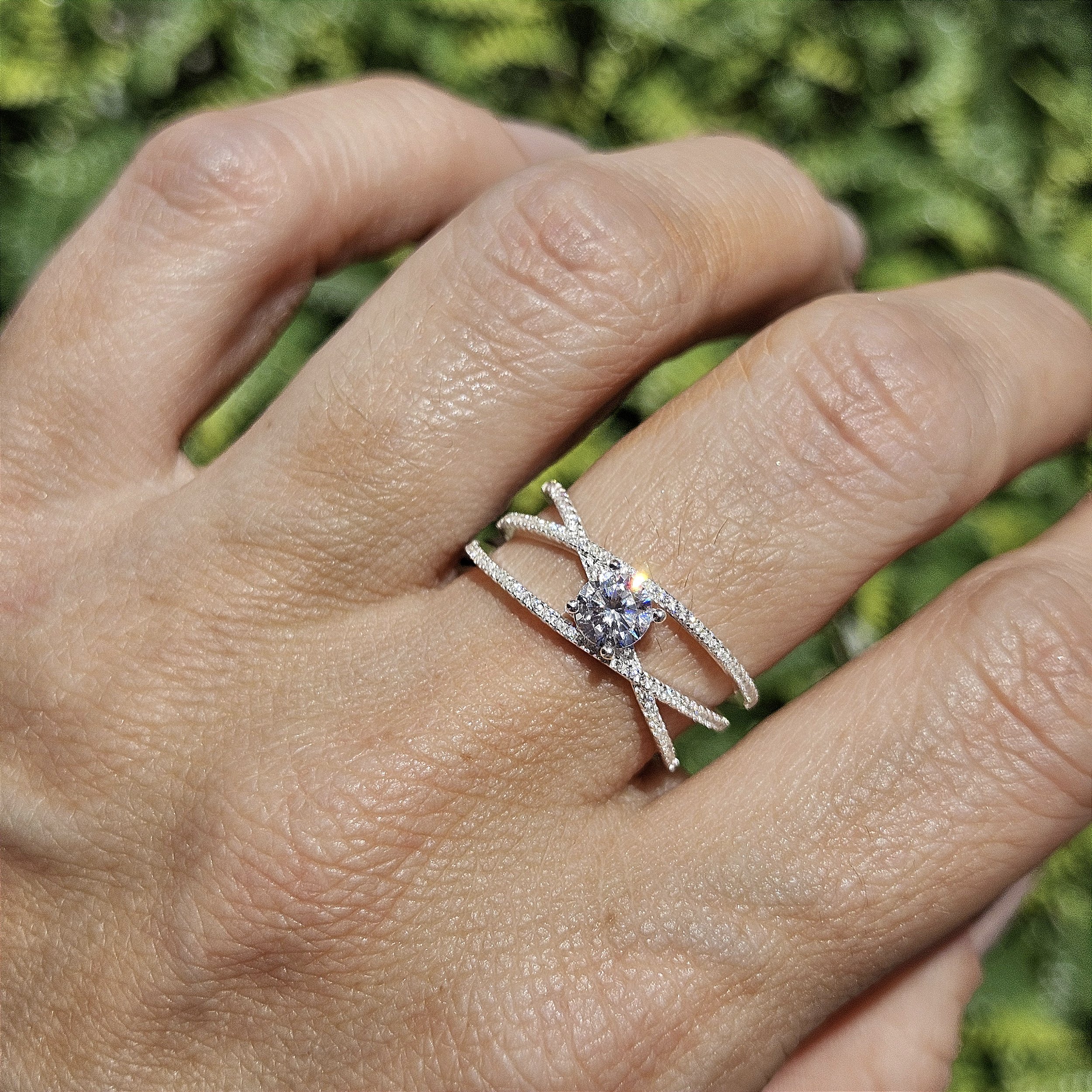 ANEL DE PRATA 3 FIOS ENTRELAÇADOS E CRAVEJADOS COM UM SOLITÁRIO DE 5MM