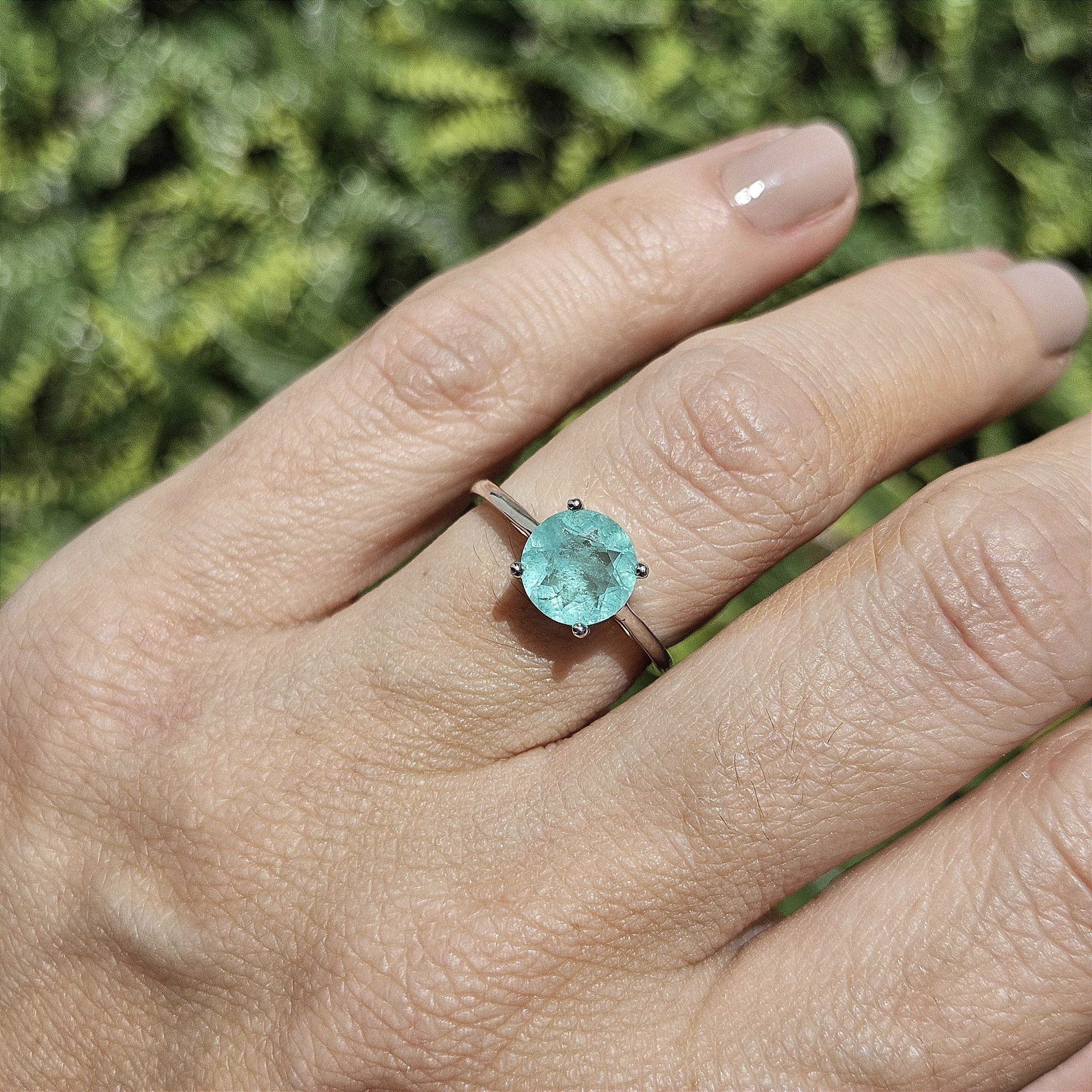 ANEL DE PRATA RODINADO COM PEDRA REDONDA VERDE