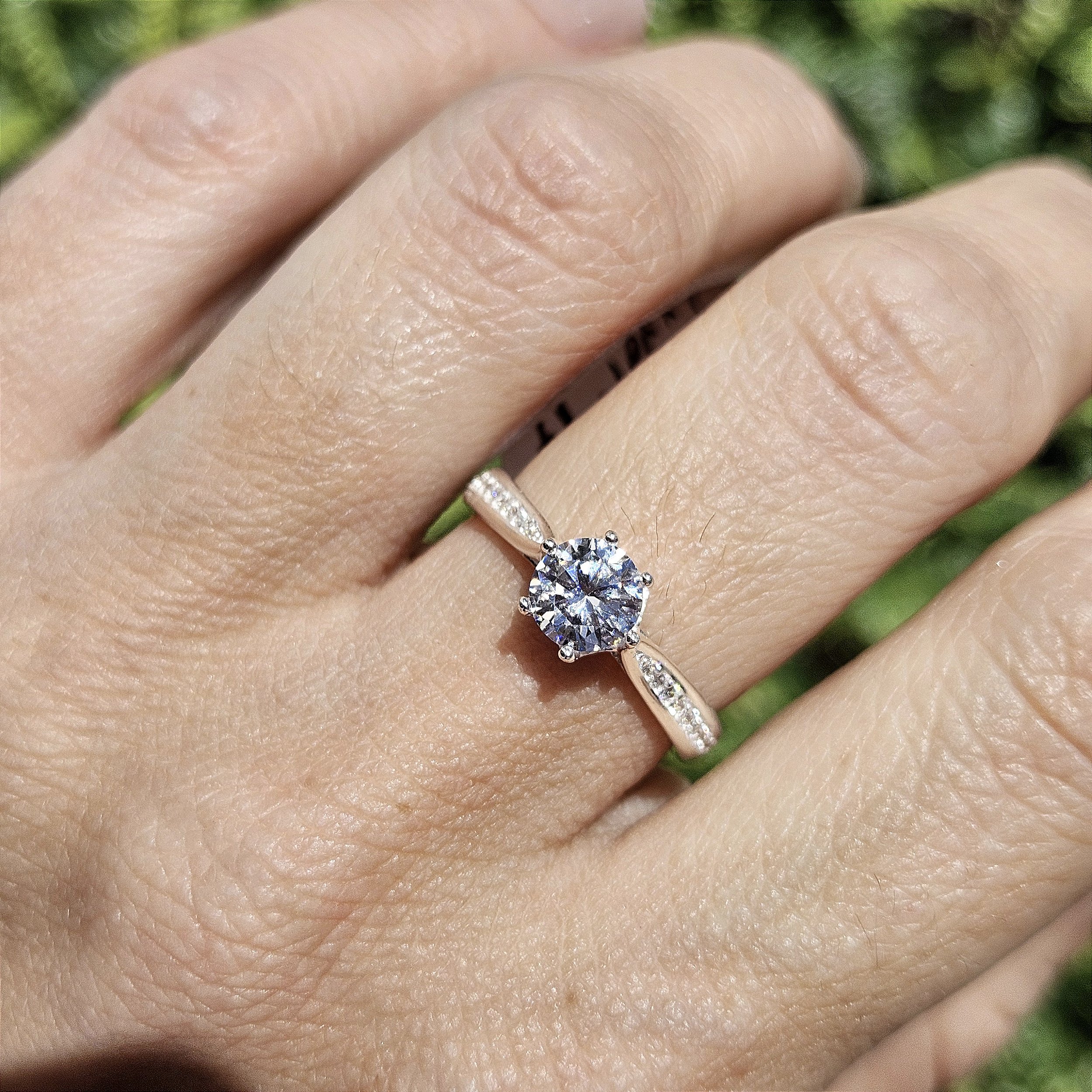 ANEL DE PRATA SOLITÁRIO DE 6MM COM MICRO PEDRINHAS AO LADO