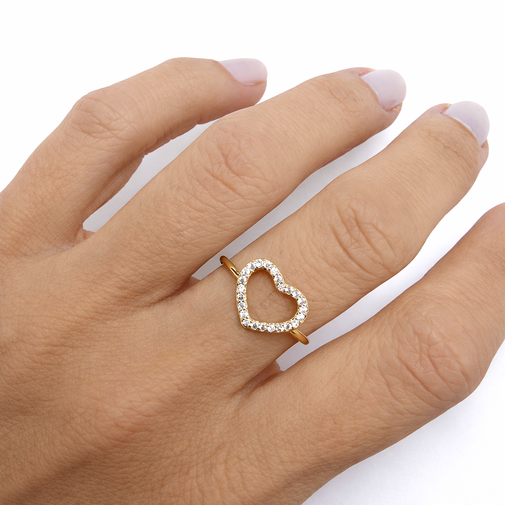 ANEL DOURADO CORACAO VAZADO TODO CRAVEJADO