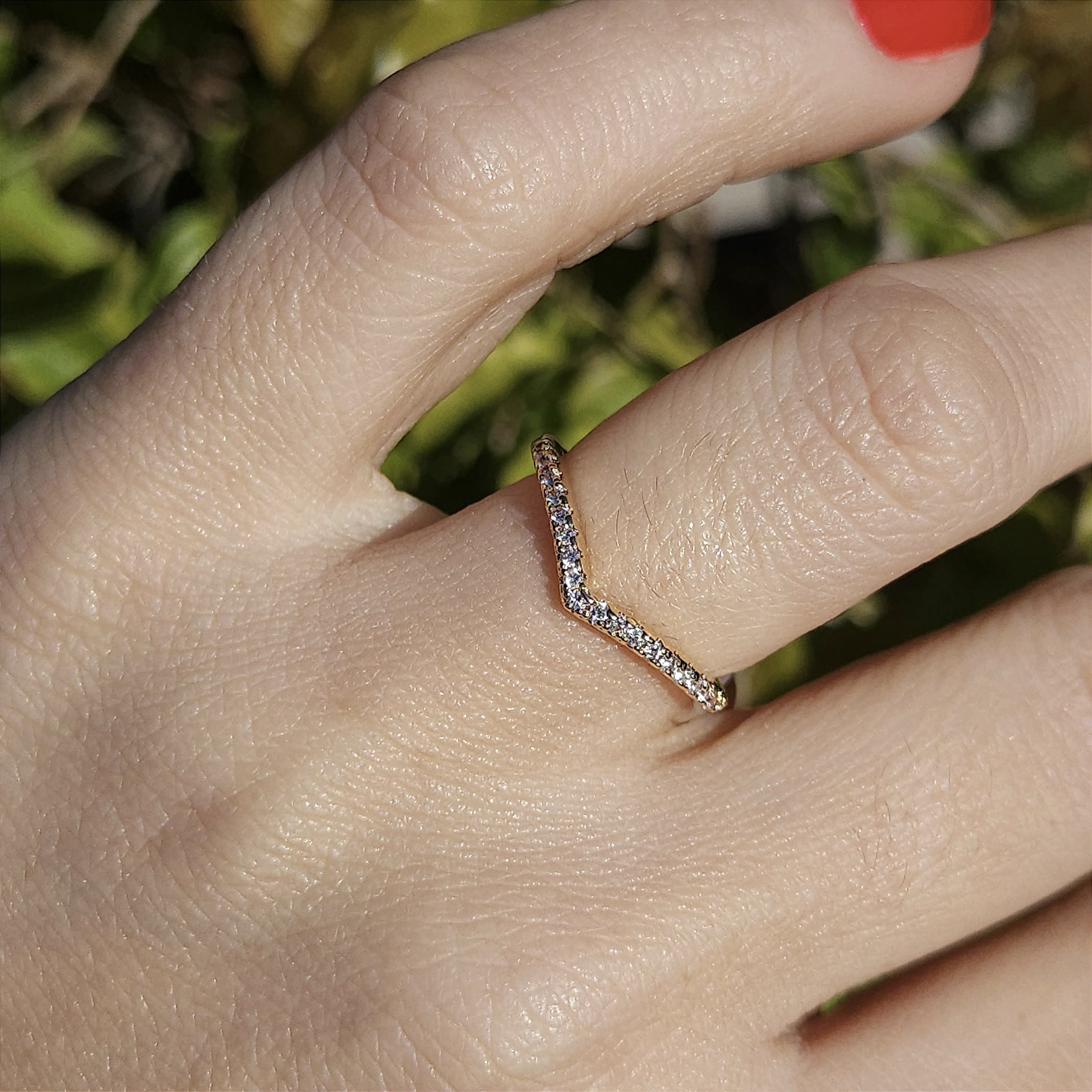 ANEL DOURADO EM V CRAVEJADO NA FRENTE