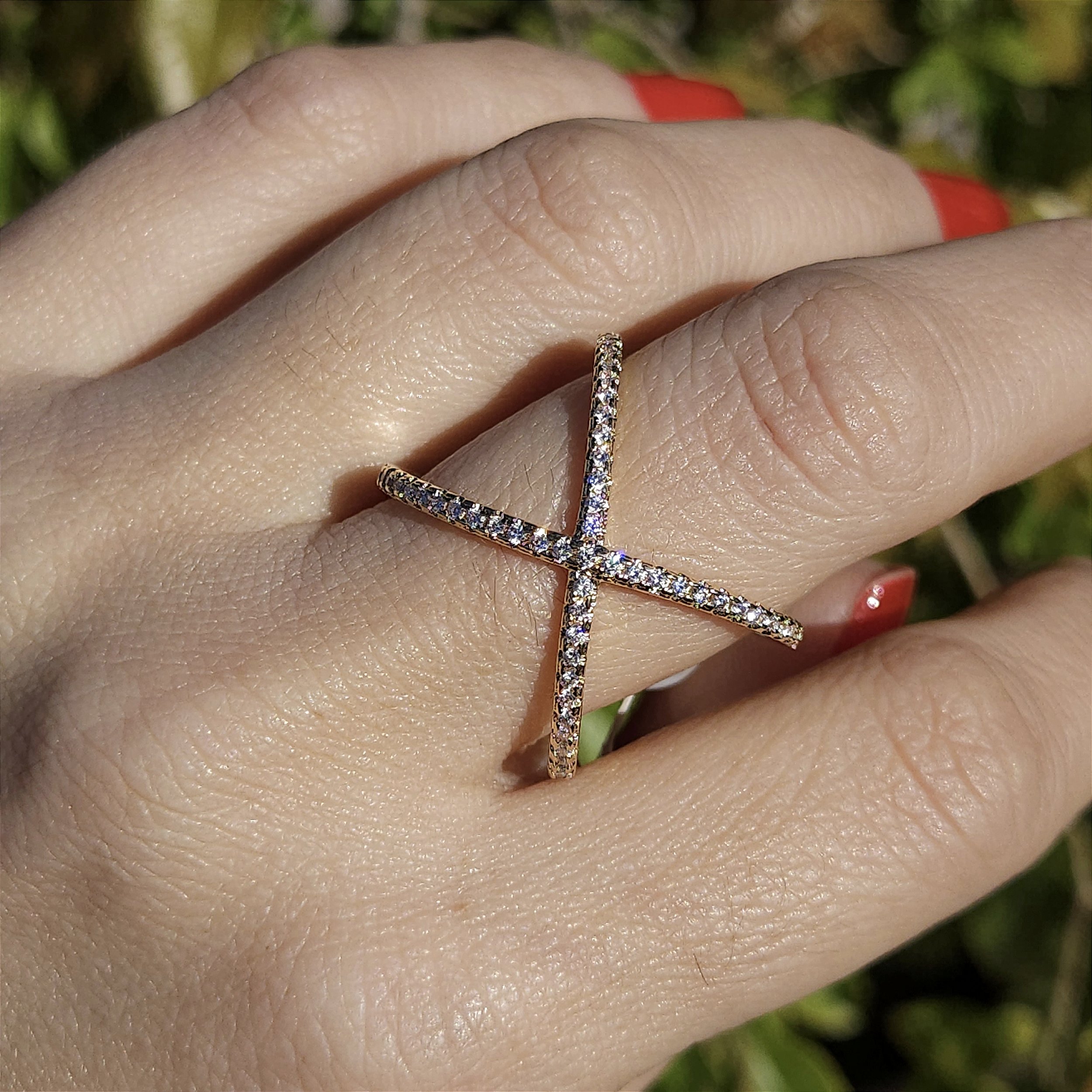 ANEL DOURADO EM X COM PEDRAS DE ZIRCÔNIAS BRANCAS