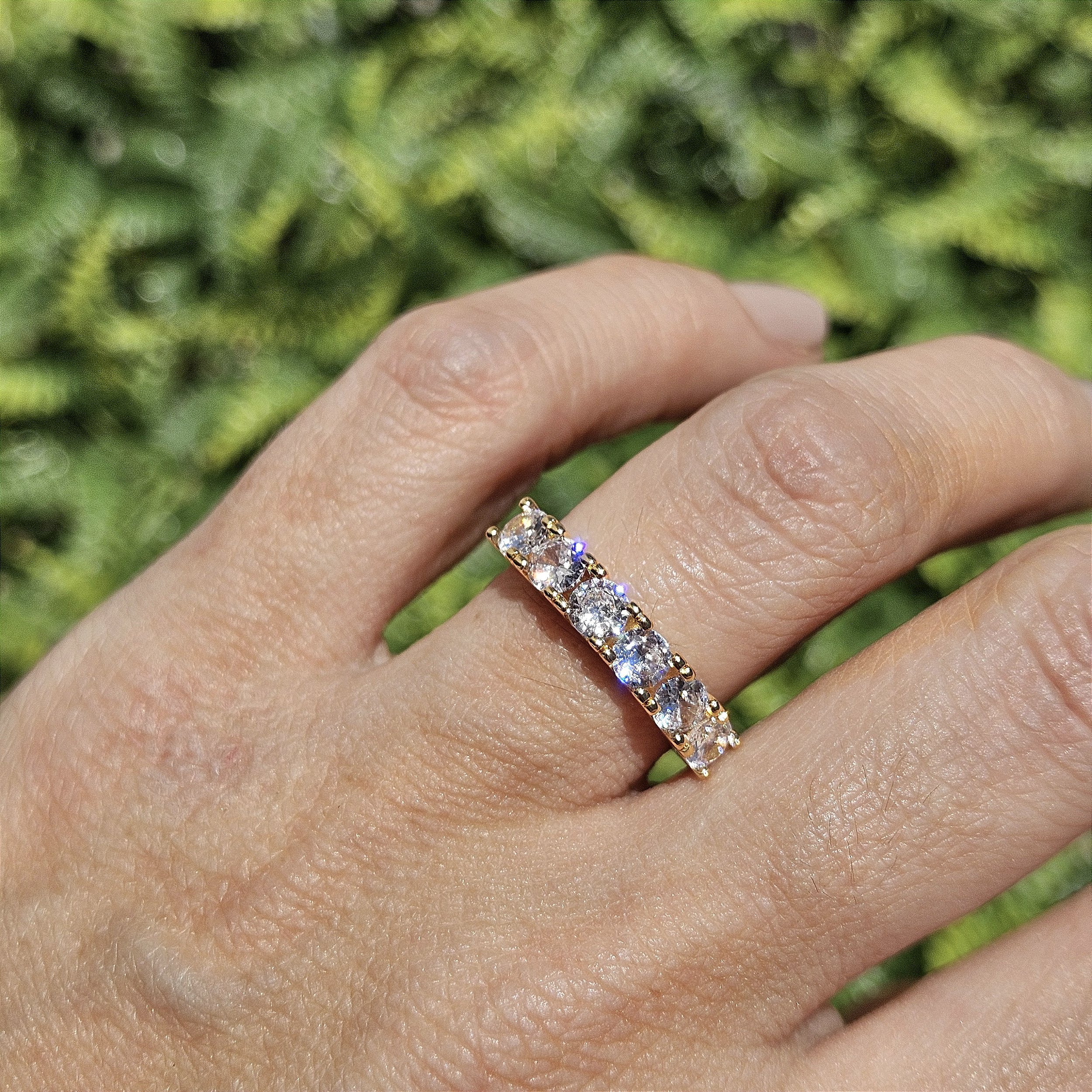 ANEL DOURADO MEIA ALIANÇA COM 6 ZIRCÔNIAS BRANCAS