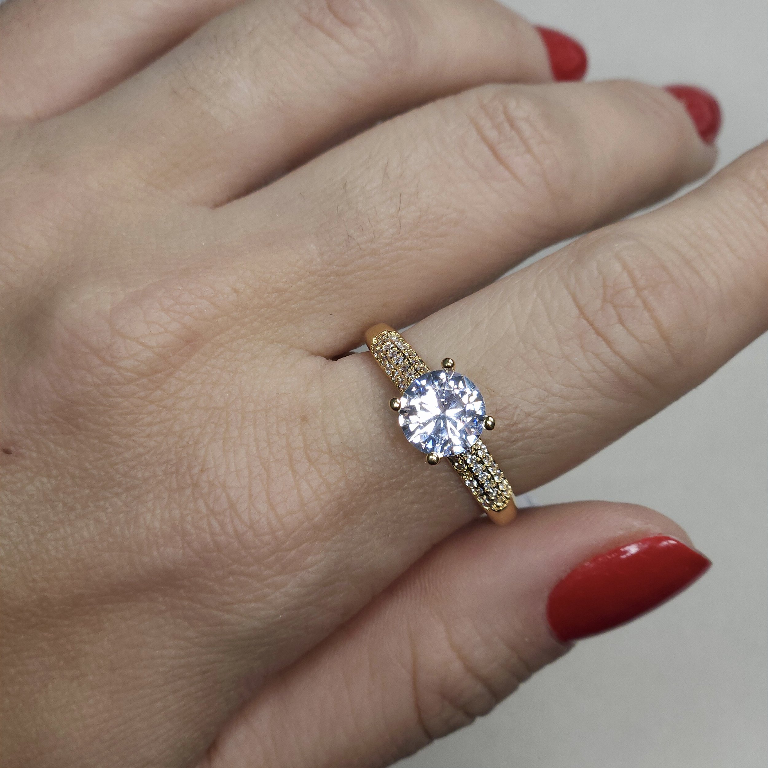 ANEL DOURADO MEIA ALIANÇA CRAVEJADA COM PEDRA GRANDE SOLITARIO