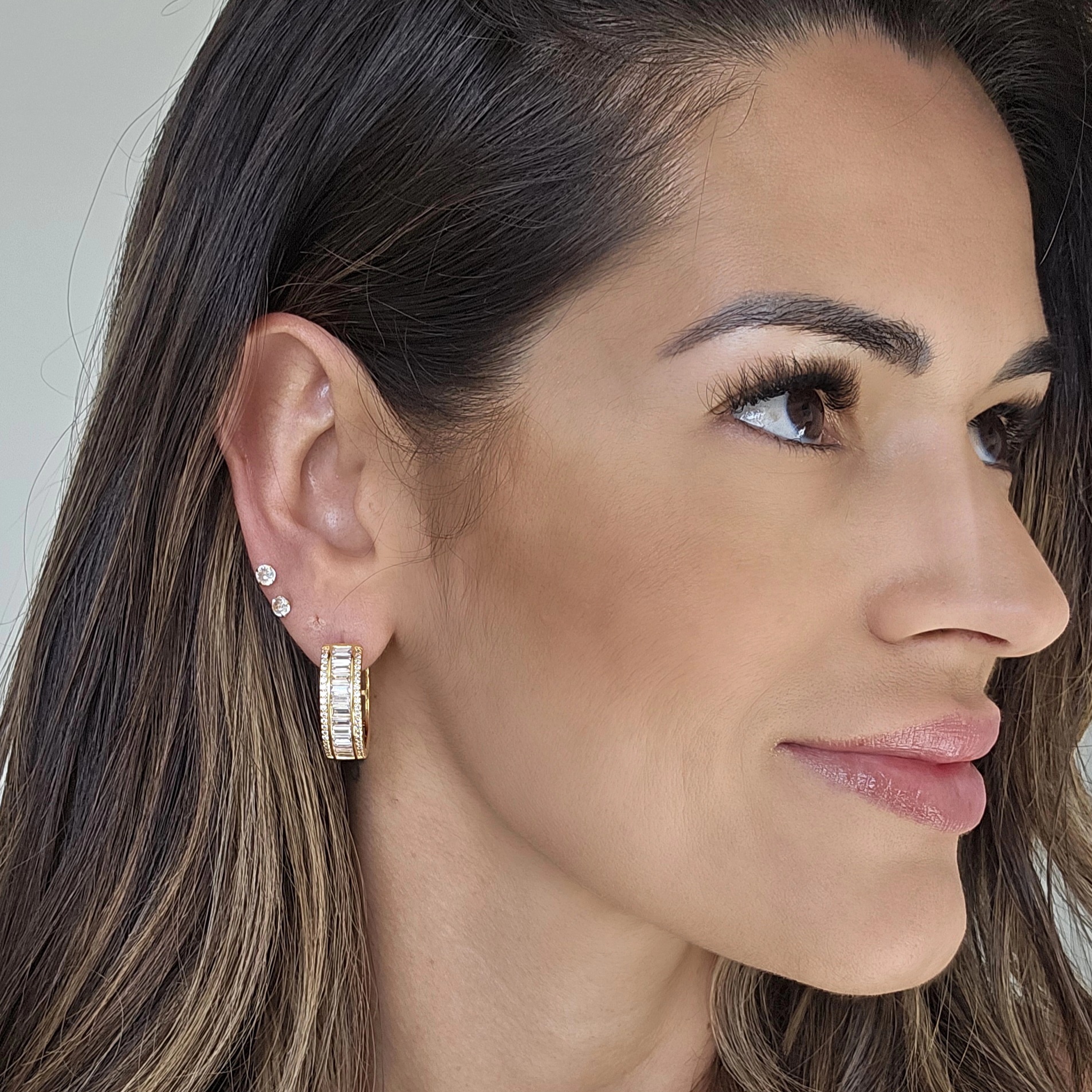ARGOLA DOURADA COM CRISTAIS BAGUETE E ZIRCÔNIAS