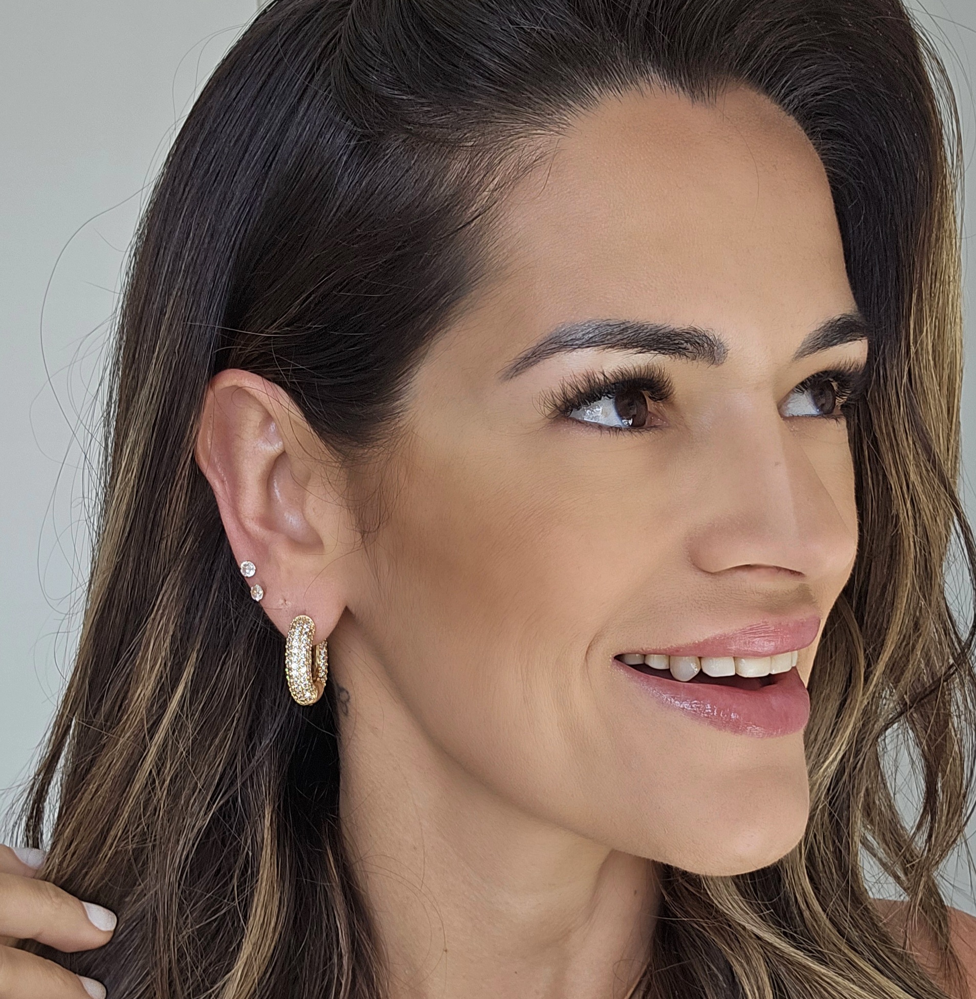 ARGOLA DOURADA CRAVEJADA COM ZIRCÔNIAS BRANCA