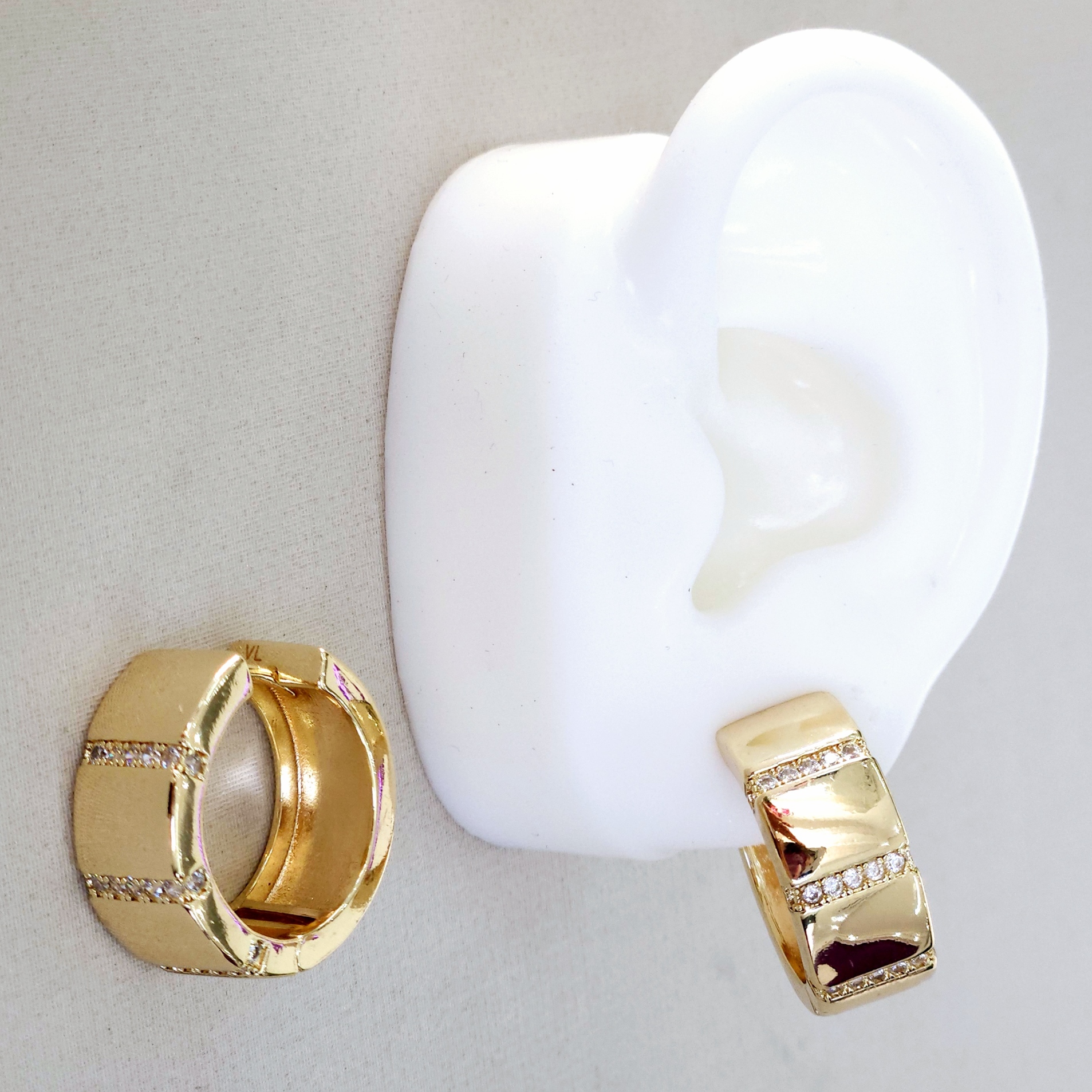ARGOLA DOURADA LARGA COM 3 FILETES CRAVEJADOS