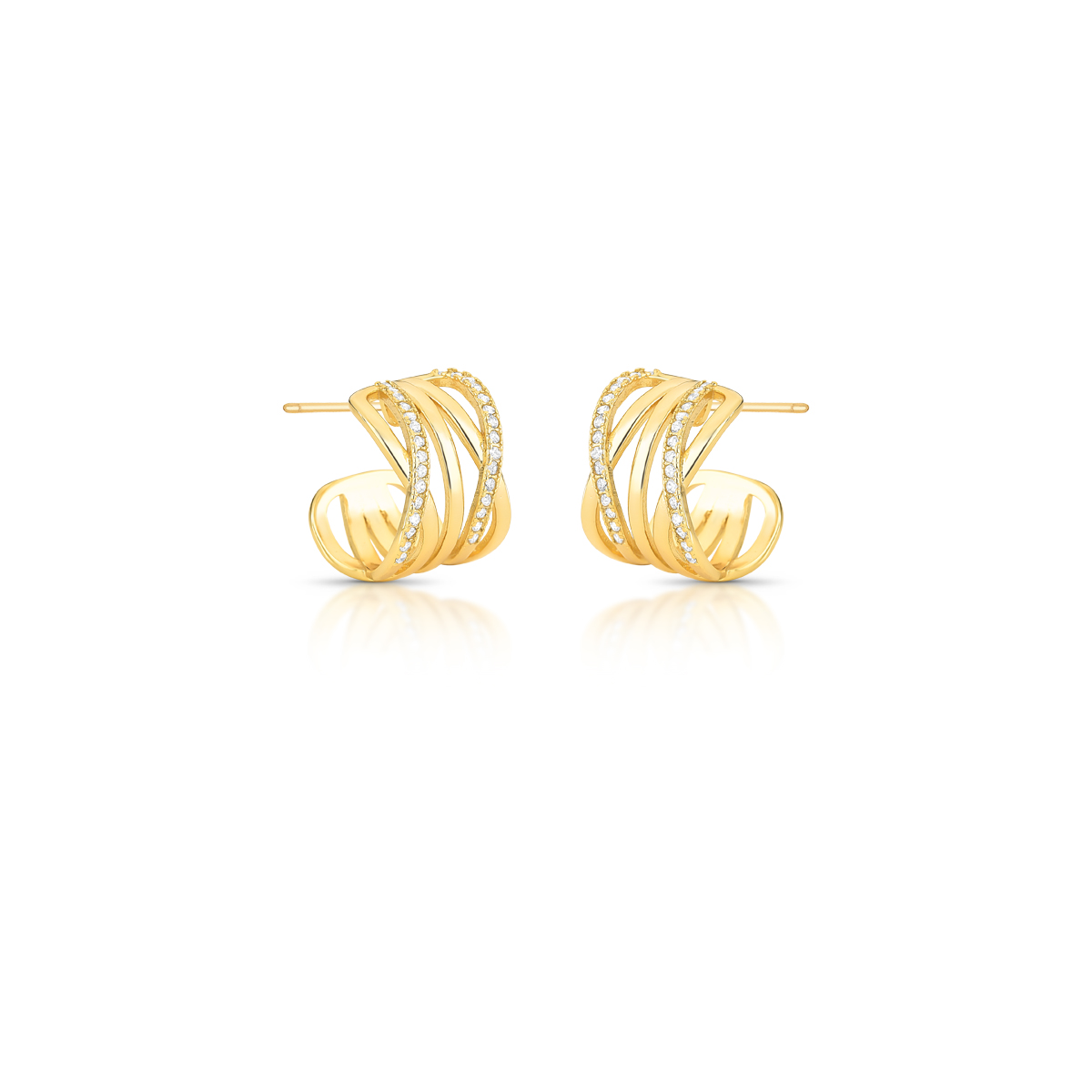 ARGOLA DOURADA MÉDIA COM DETALHES EM X CRAVEJADOS NA FRENTE - COM TARRACHA