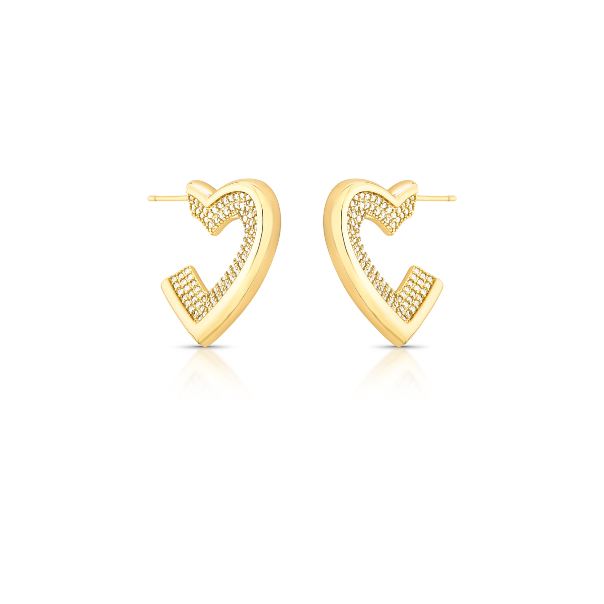ARGOLA DOURADA MÉDIA EM FORMATO DE CORAÇÃO COM ZIRCÔNIAS BRANCAS NAS LATERAIS - COM TARRACHA
