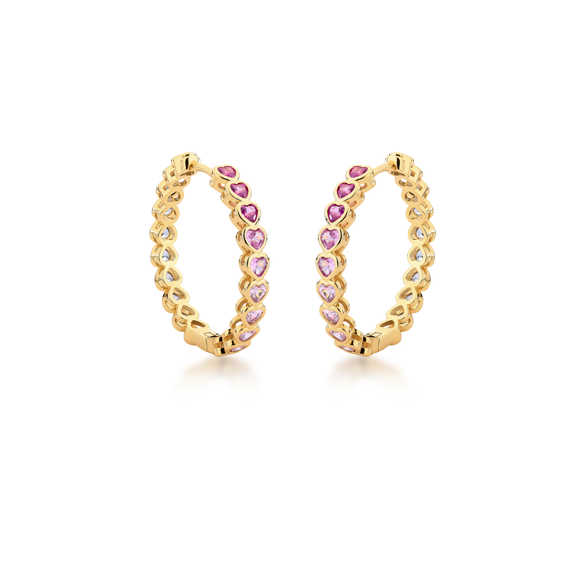 ARGOLA DOURADA MÉDIA E DETALHES DE CORAÇÃO CRAVEJADO COM ZIRCÔNIAS COLORIDAS