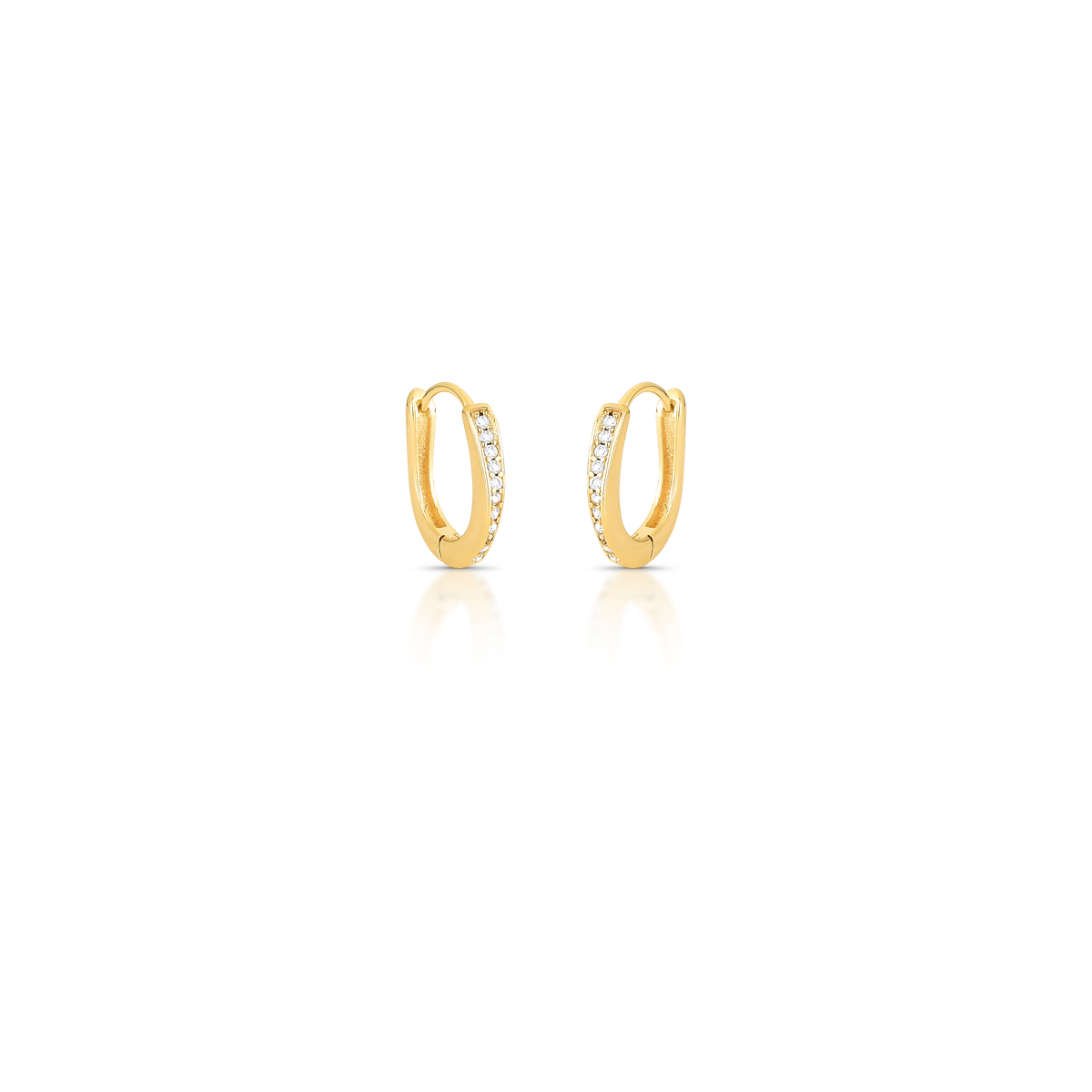 ARGOLA DOURADA PEQUENA DESIGN TRANSVERSAL COM ZIRCÔNIAS BRANCAS