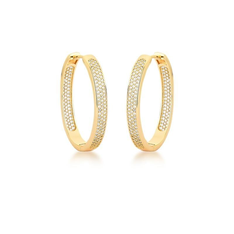 ARGOLA DOURADO OVAL GRANDE CRAVEJADA DE ZIRCÔNIAS BRANCAS