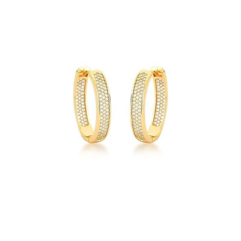 ARGOLA DOURADO OVAL MEDIA CRAVEJADA DE ZIRCÔNIAS BRANCAS