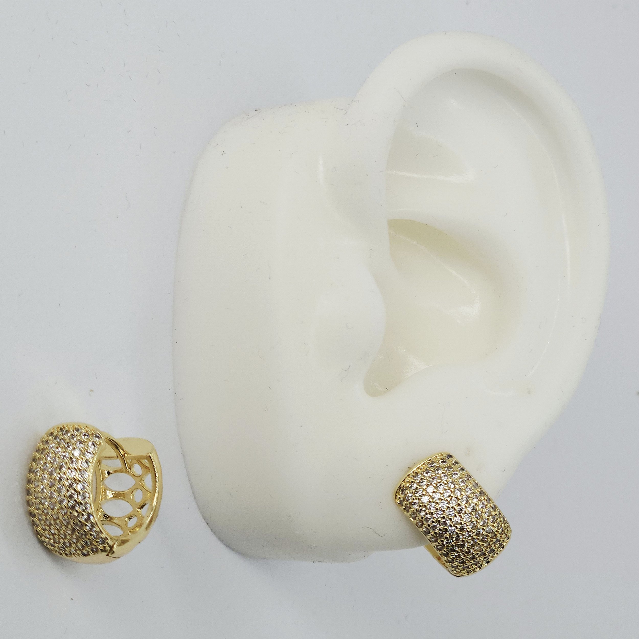 ARGOLAS DOURADAS LARGA COM 8 FIOS CRAVEJADOS PEQUENA