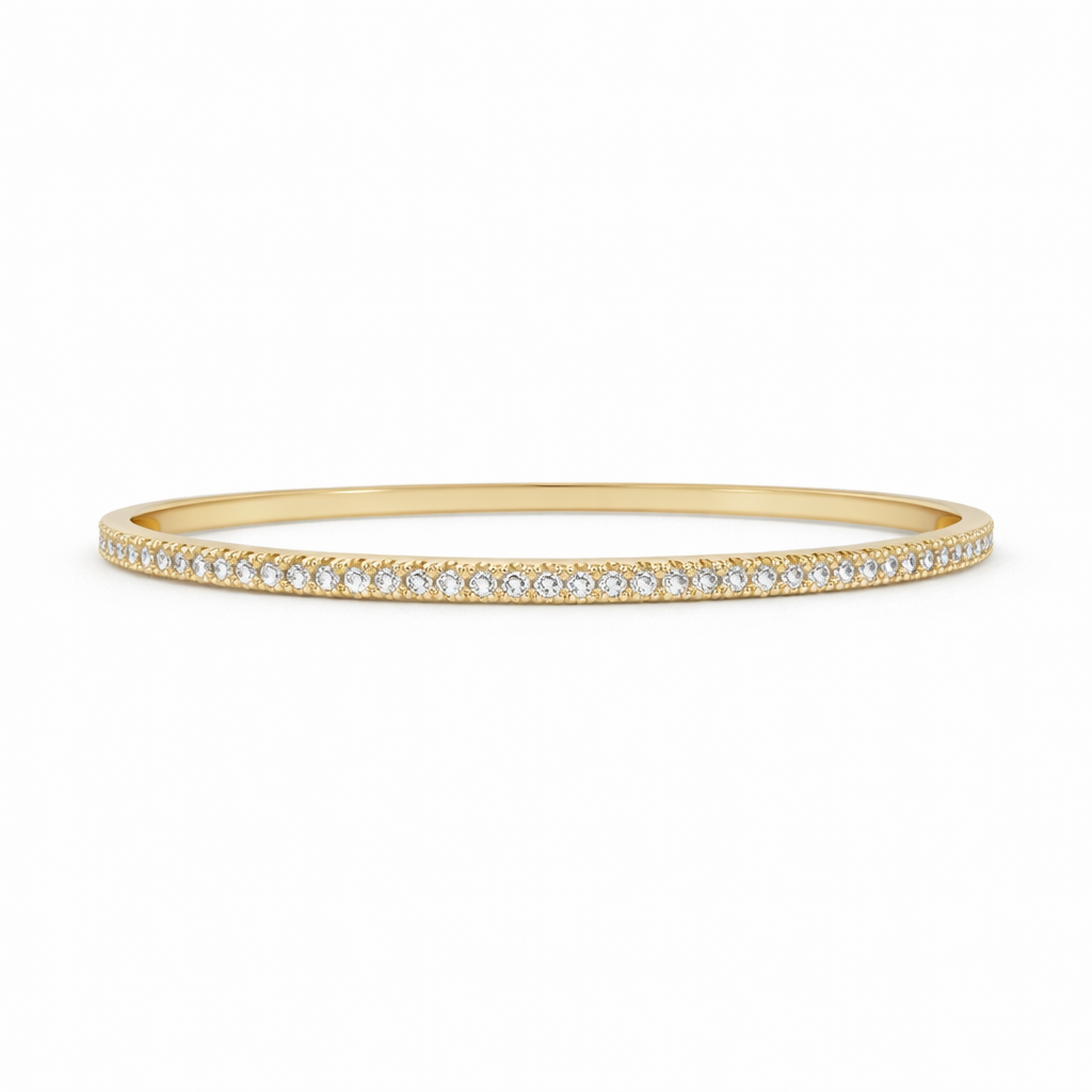 BRACELETE DOURADO FINO COM FECHO TRAVA E METADE CRAVEJADO