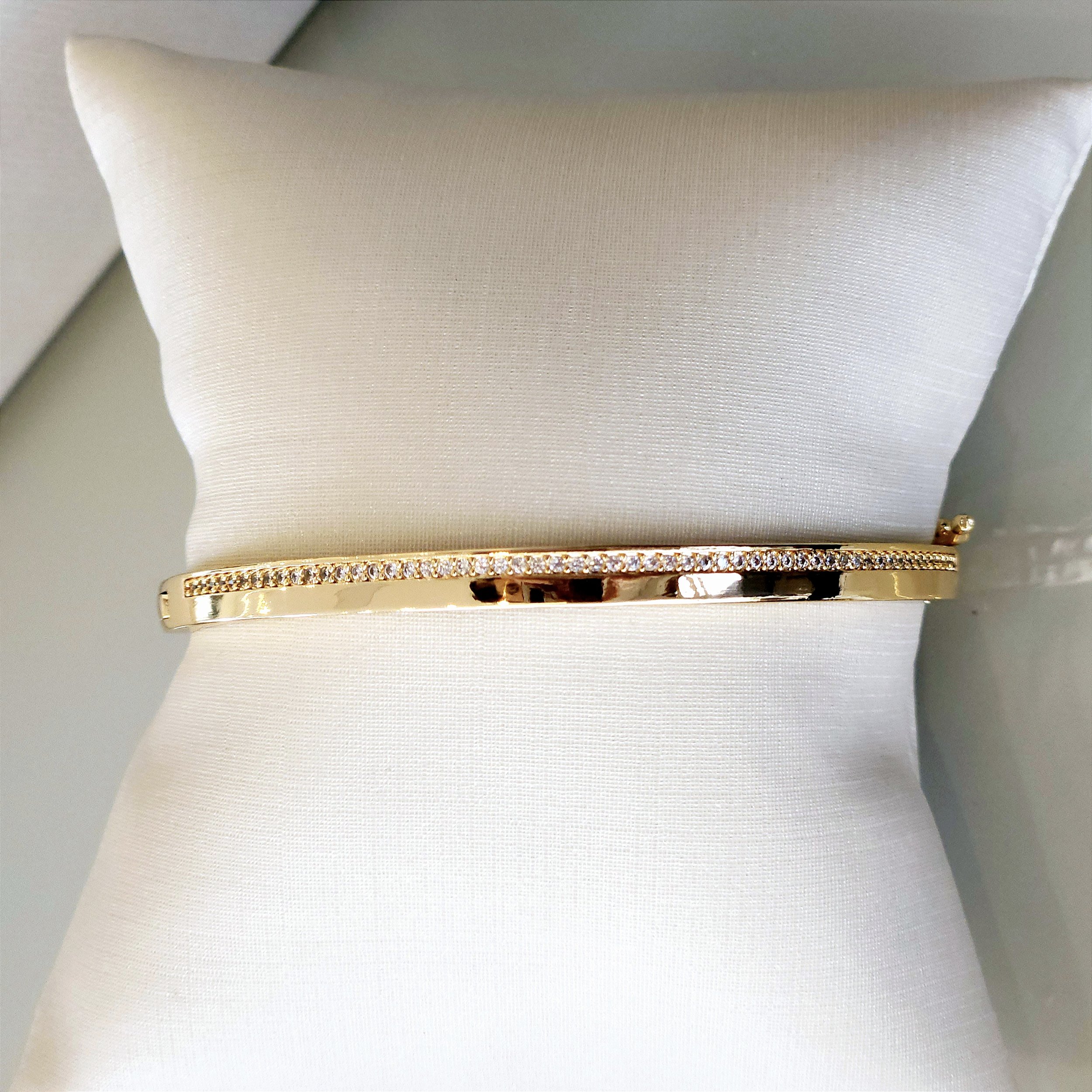 BRACELETE DOURADO FINO COM FECHO TRAVA E METADE UM FIO CRAVEJADO