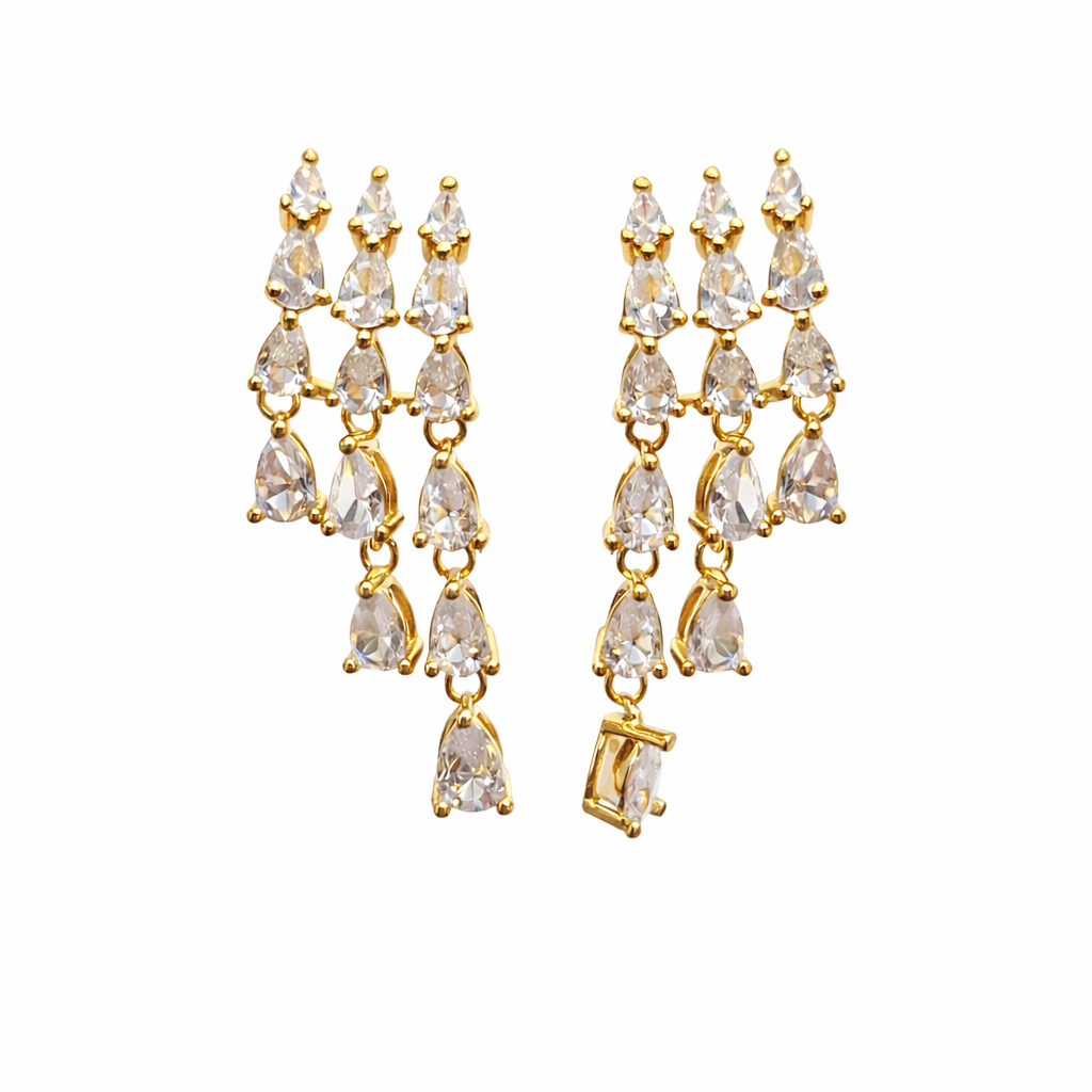 BRINCO DOURADO DE 3 FILETES COM PEDRINHAS DE GOTAS DO MAIOR PARA O MENOR