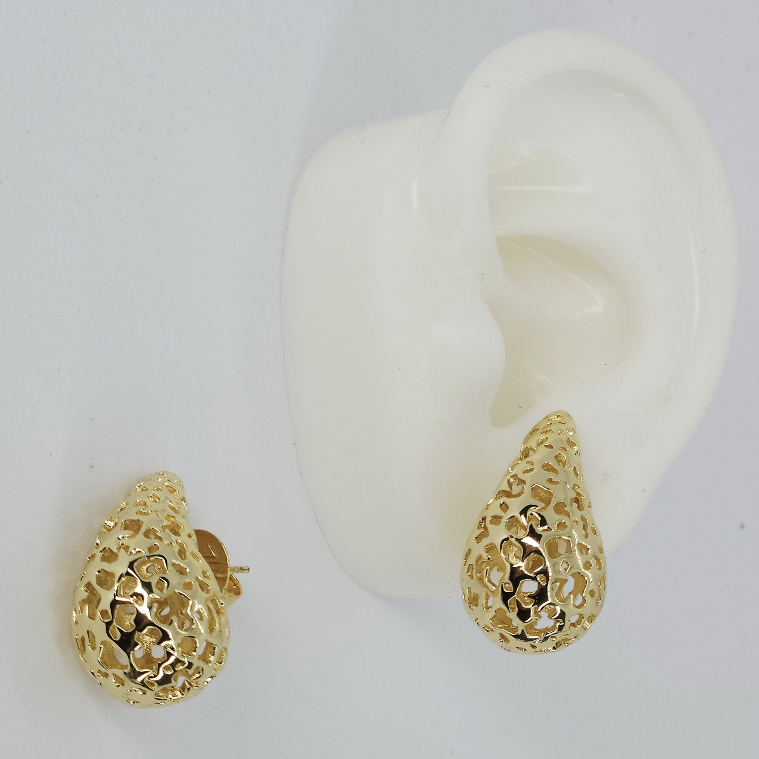 BRINCO DOURADO DE GOTA TEXTURIZADO COM ESTRELAS LISAS
