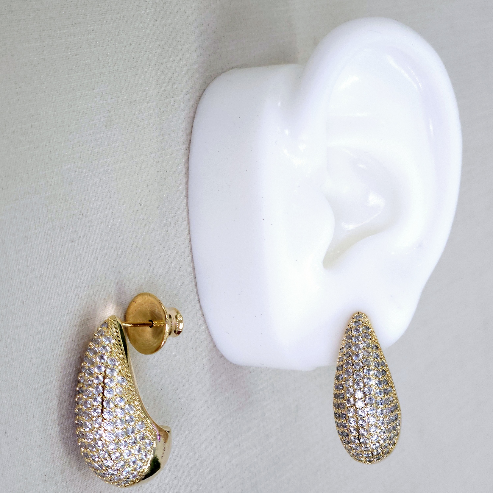 BRINCO DOURADO FORMATO DE GOTA TODO CRAVEJADO