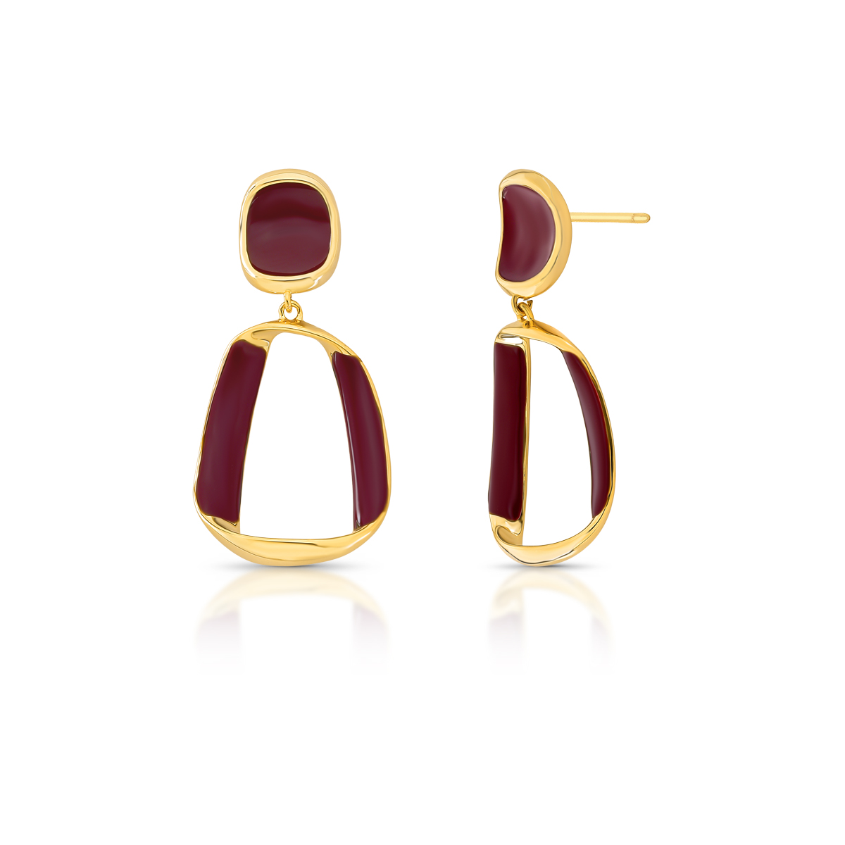 BRINCO DOURADO GRANDE PENDURADO ARGOLA ESMALTADA MARSALA