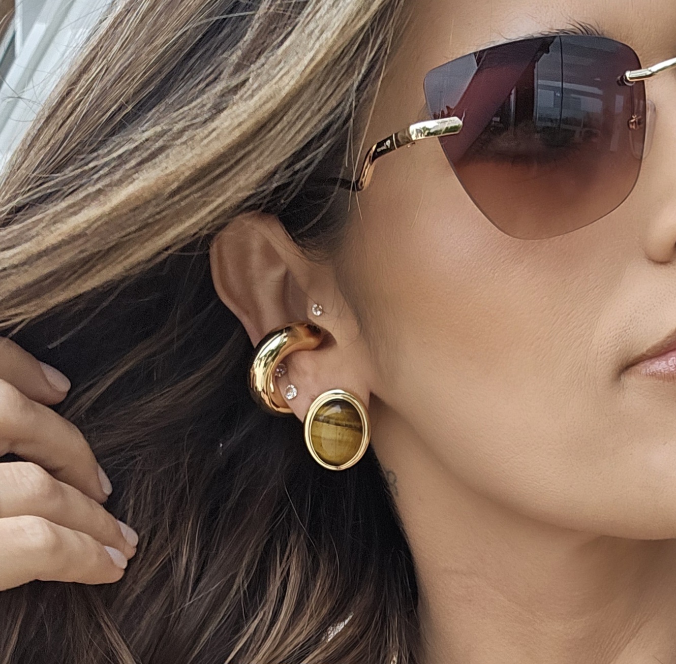BRINCO DOURADO OLHO DE TIGRE