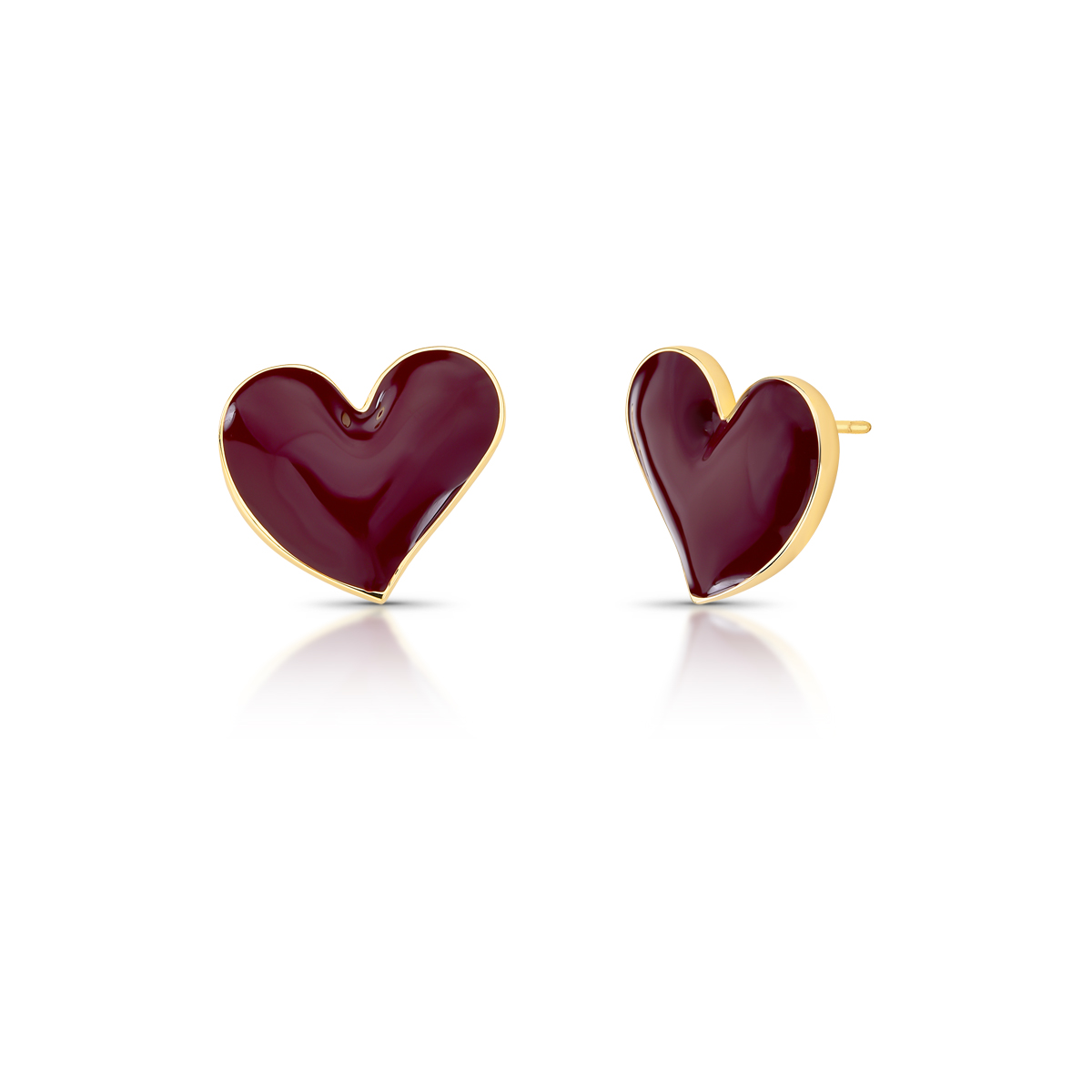 BRINCO DOURADO CORAÇÃO ESMALTADO MARSALA