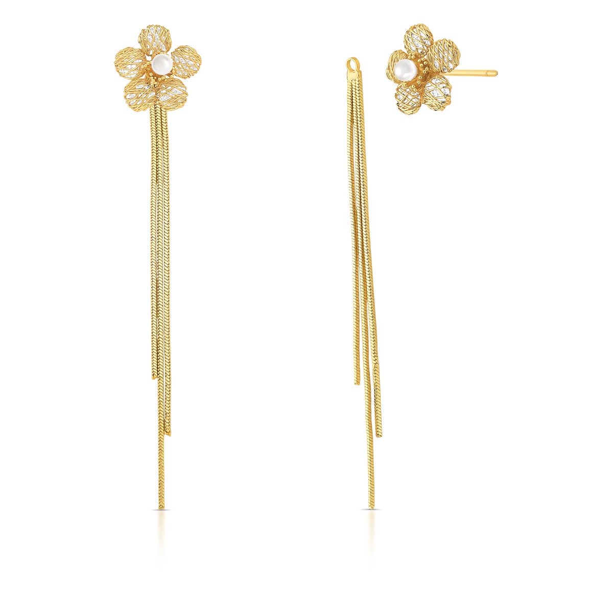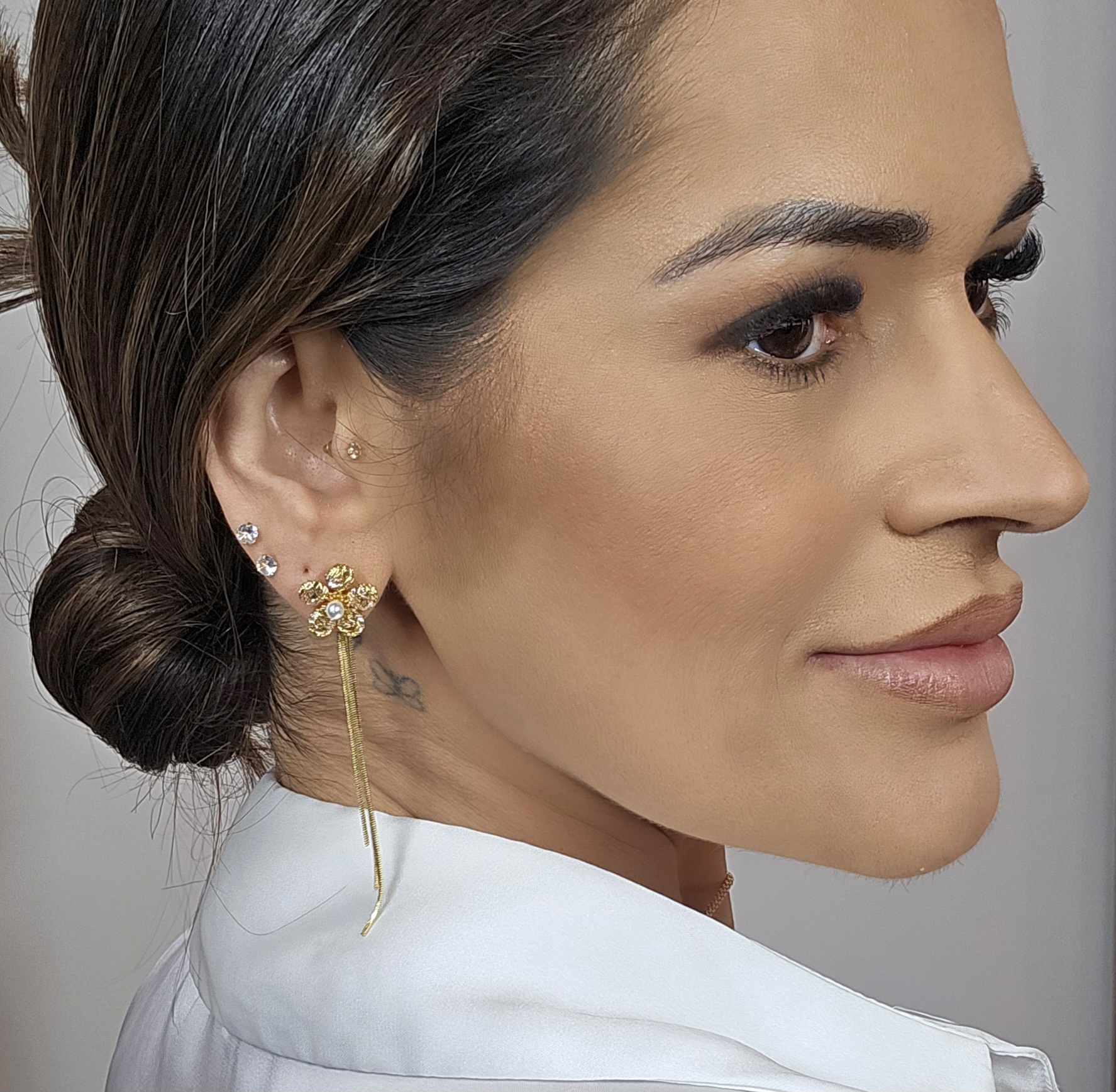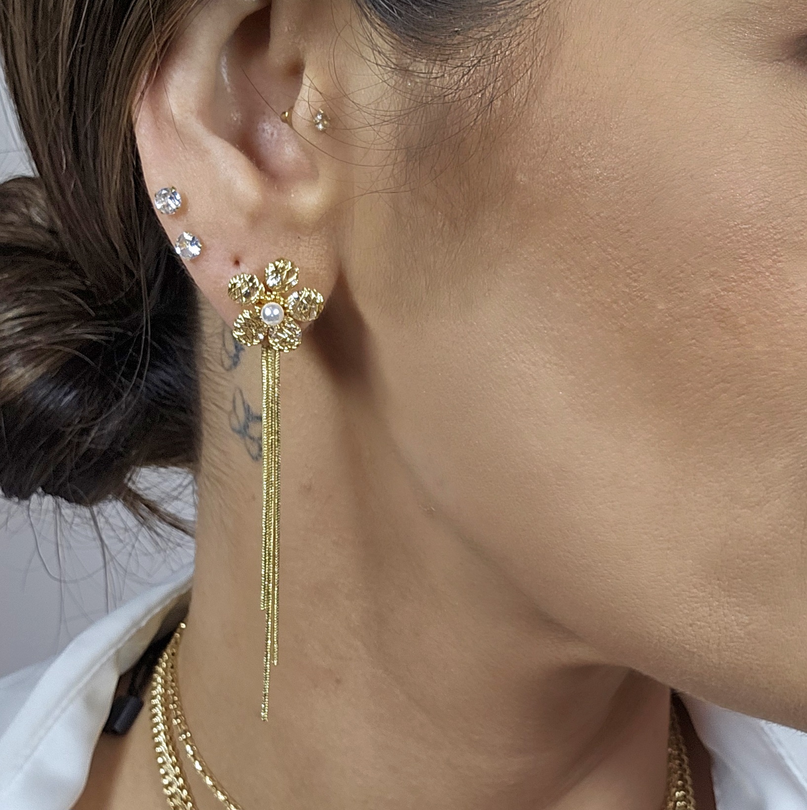 BRINCO EAR JACKET 2 EM 1 FLOR ORGANICA COM UMA PÉROLA E 3 FIOS
