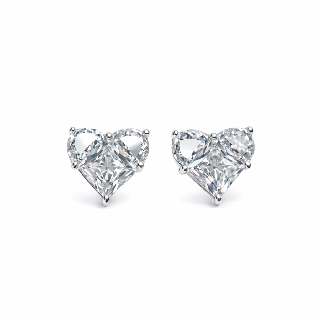 BRINCO EM RÓDIO BRANCO COM CRISTAIS EM FORMATO DE CORAÇÃO