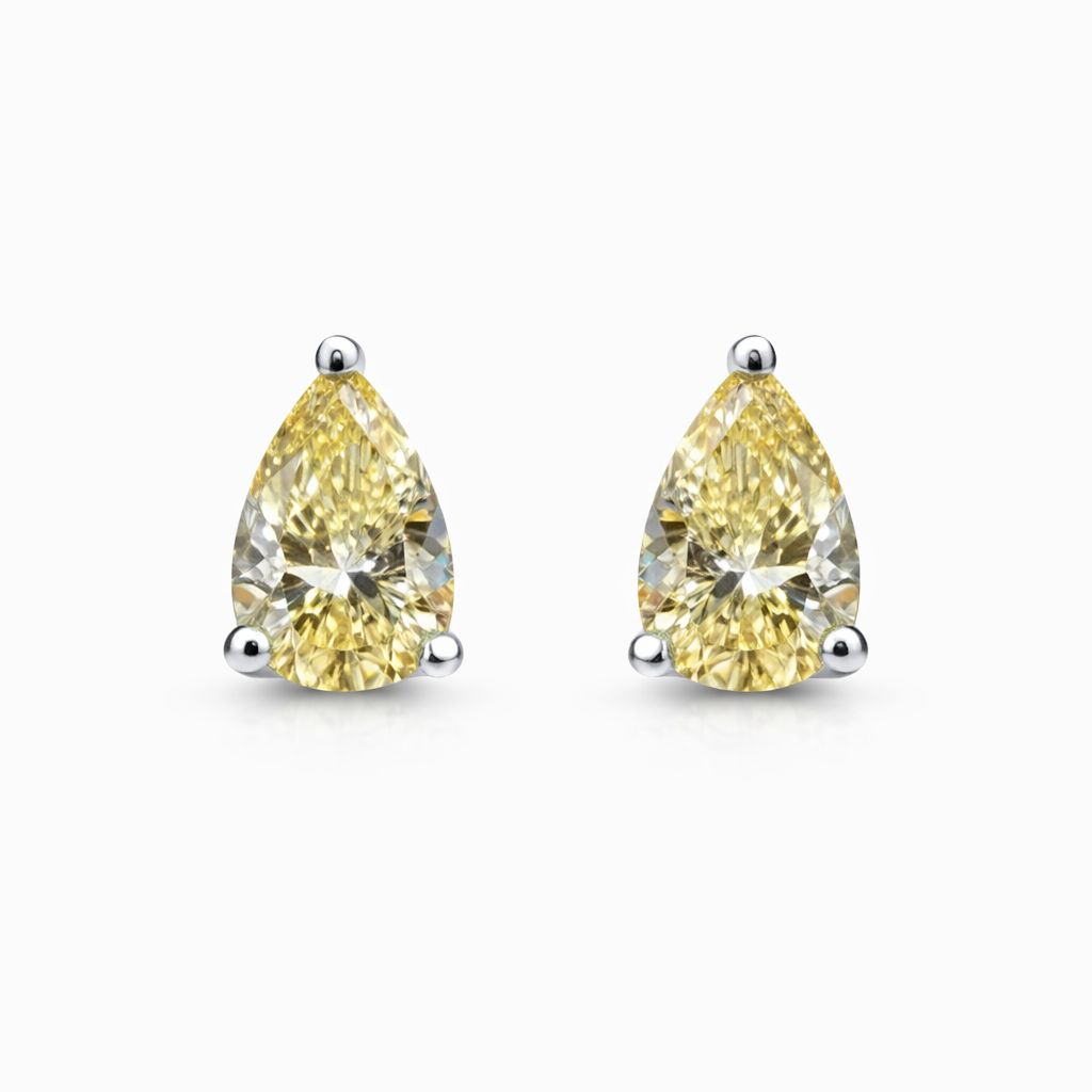 BRINCO EM RODIO BRANCO COM PEDRA GOTA AMARELA