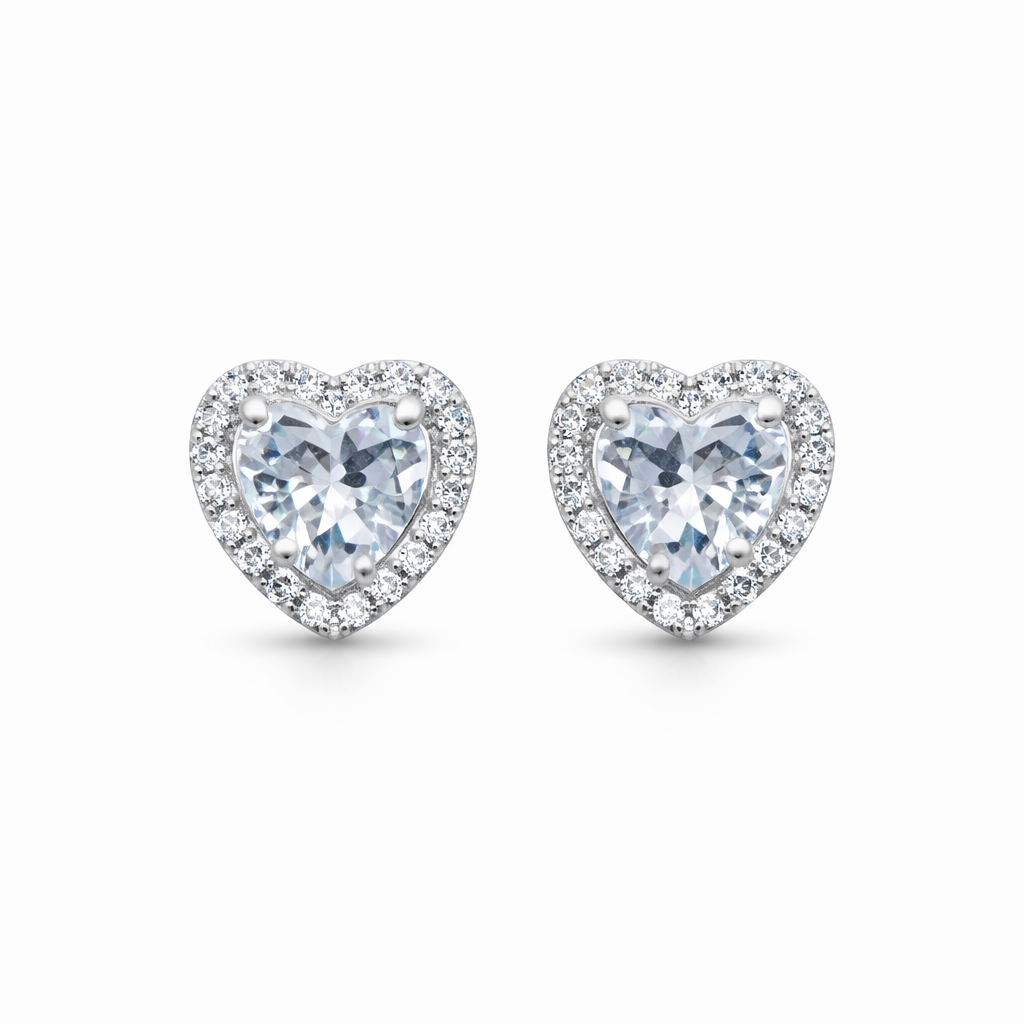 BRINCO PRATA MODELO CORAÇÃO COM ZIRCÔNIA NO MEIO E MICROZIRCÔNIAS AO REDOR