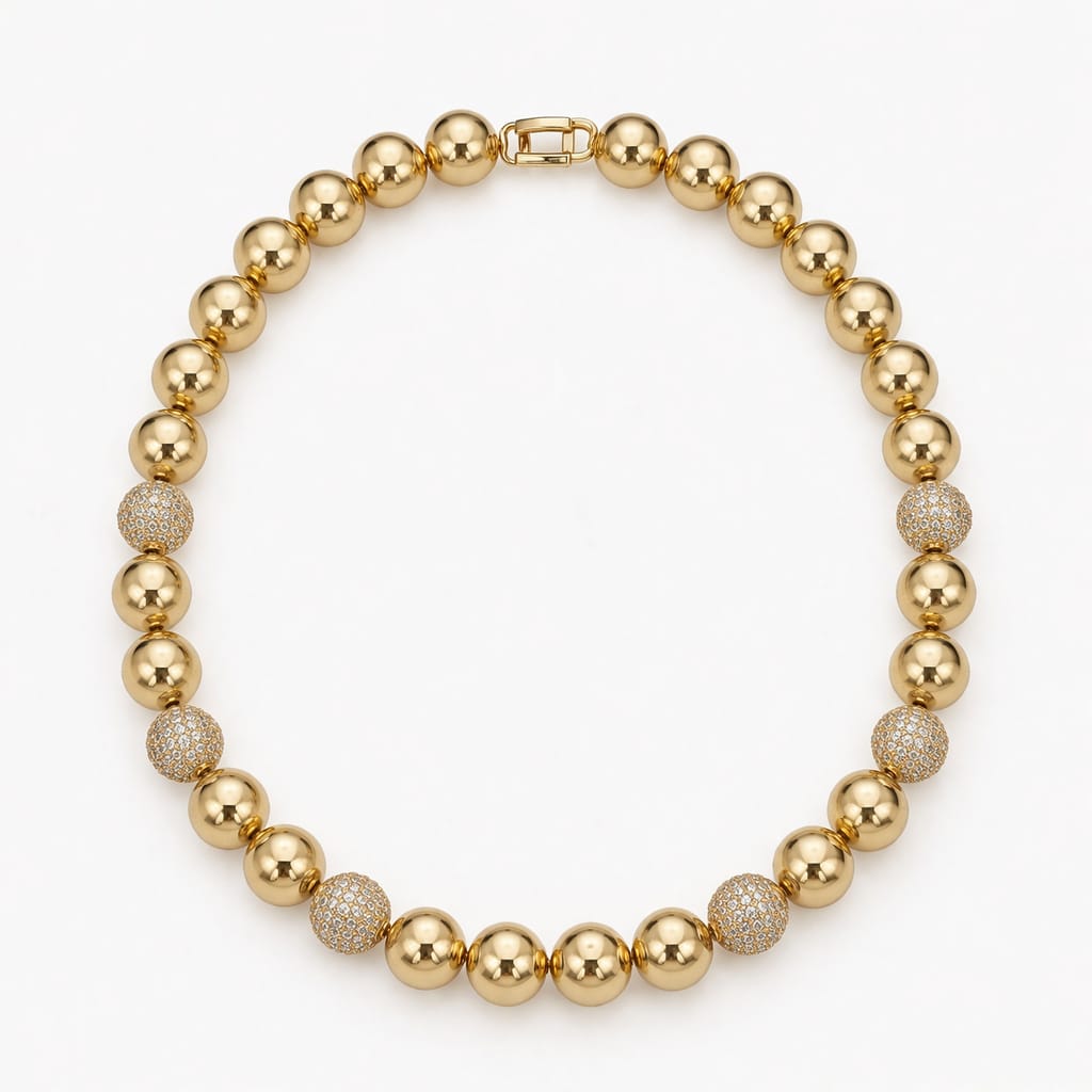 CHOCKER DOURADA MEIA ESFERA COM ALGUMAS LISAS E OUTRAS CRAVEJADAS 40CM