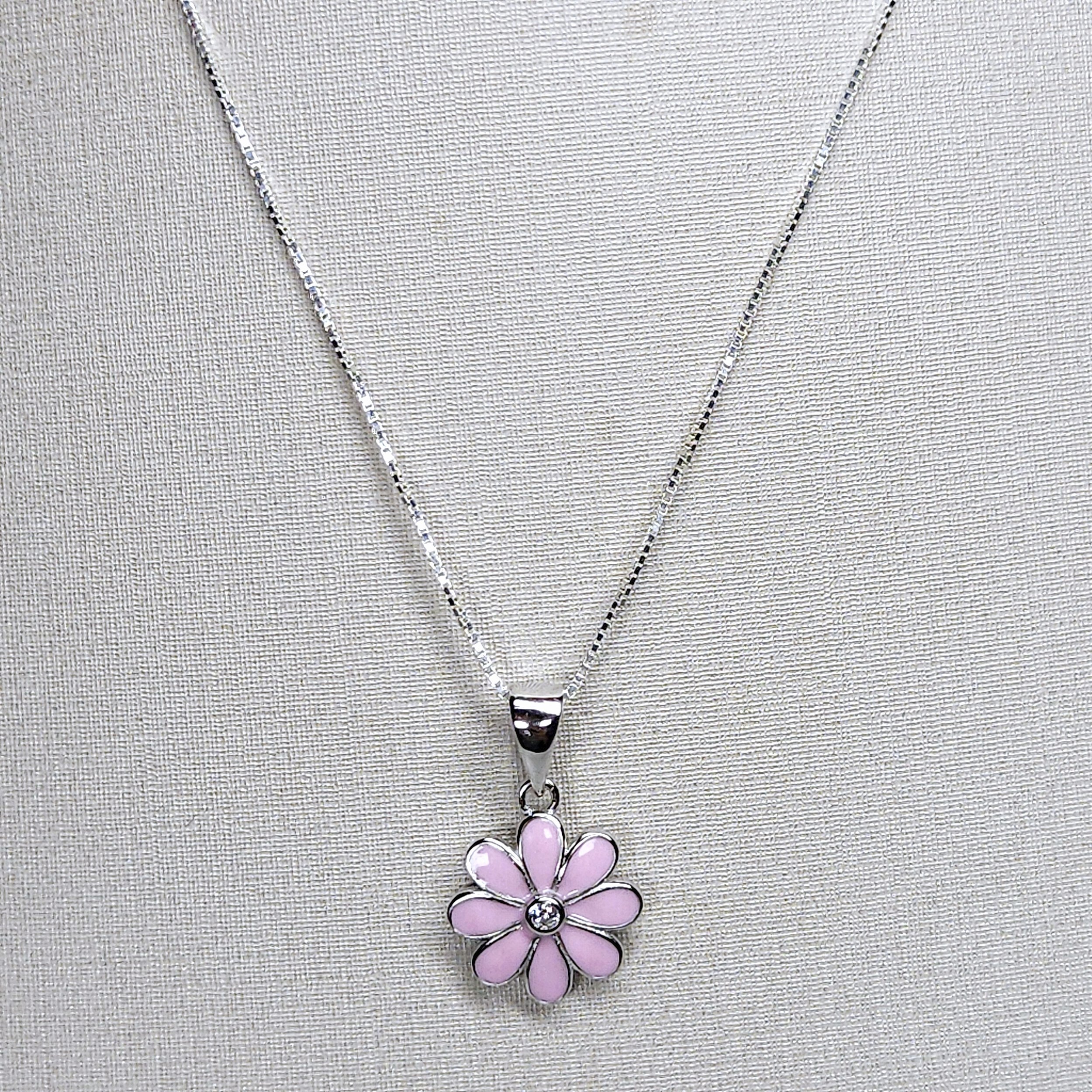COLAR DE PRATA COM PINGENTE DE FLOR ROSA