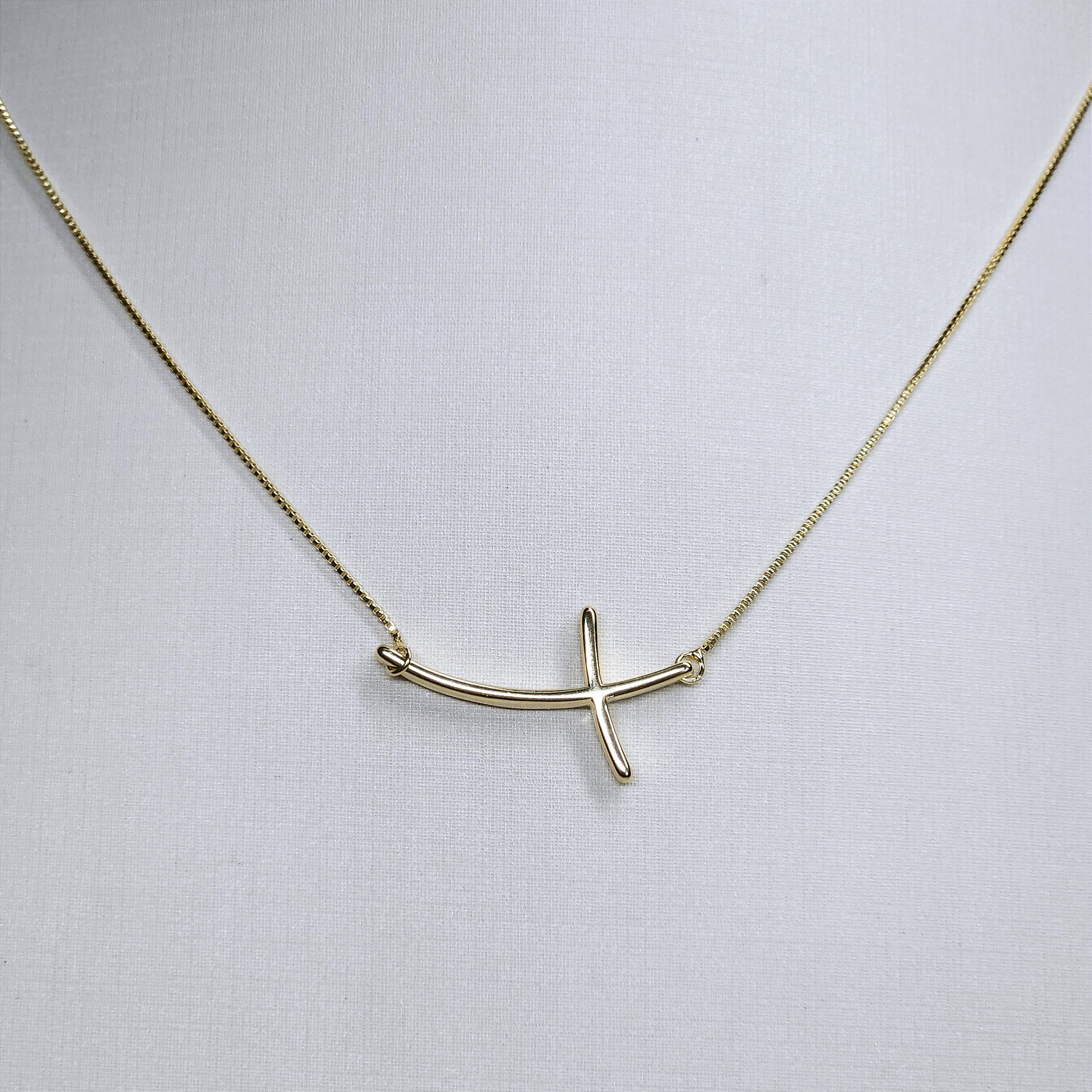 COLAR DOURADO COM CRUCIFIXO DEITADO 45+5CM