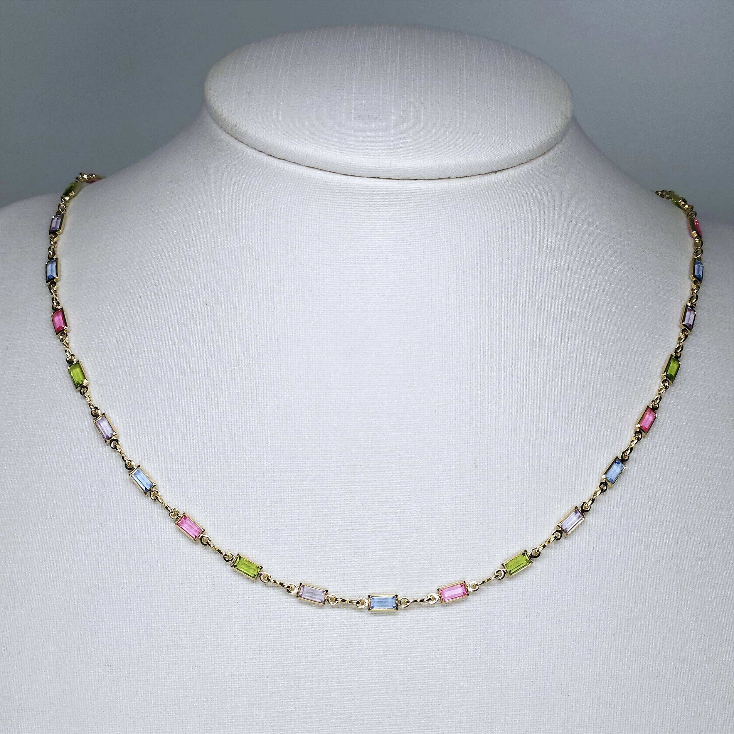 COLAR DOURADO COM PEDRINHAS DE CRISTAIS RETANGULARES COLORIDAS 45CM