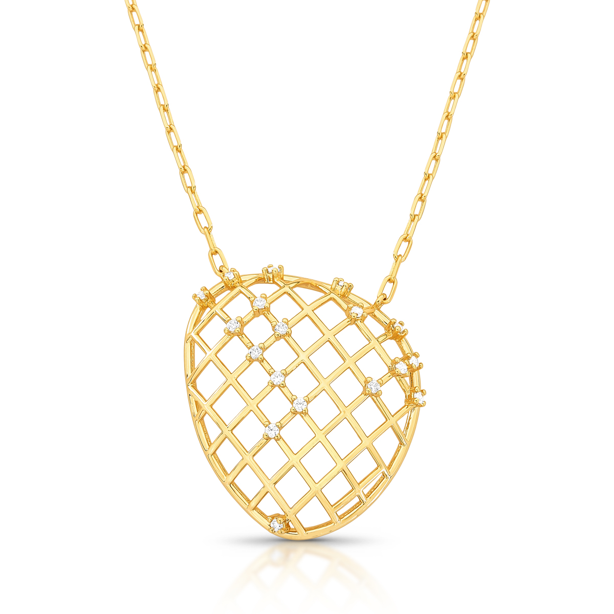 COLAR DOURADO COM PINGENTE OVAL VAZADO E GRADE COM ZIRCÔNIAS CRAVEJADAS 45+5CM