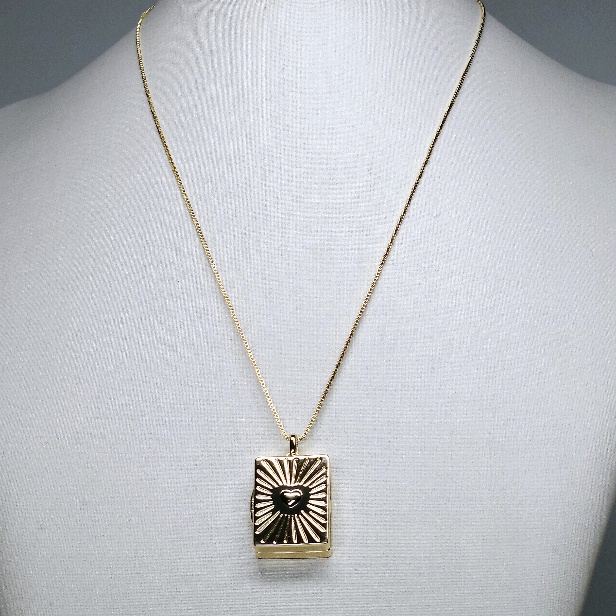 COLAR DOURADO RELICÁRIO COM PINGENTE RETANGULAR COM CORAÇÃO NO MEIO - 45+5CM