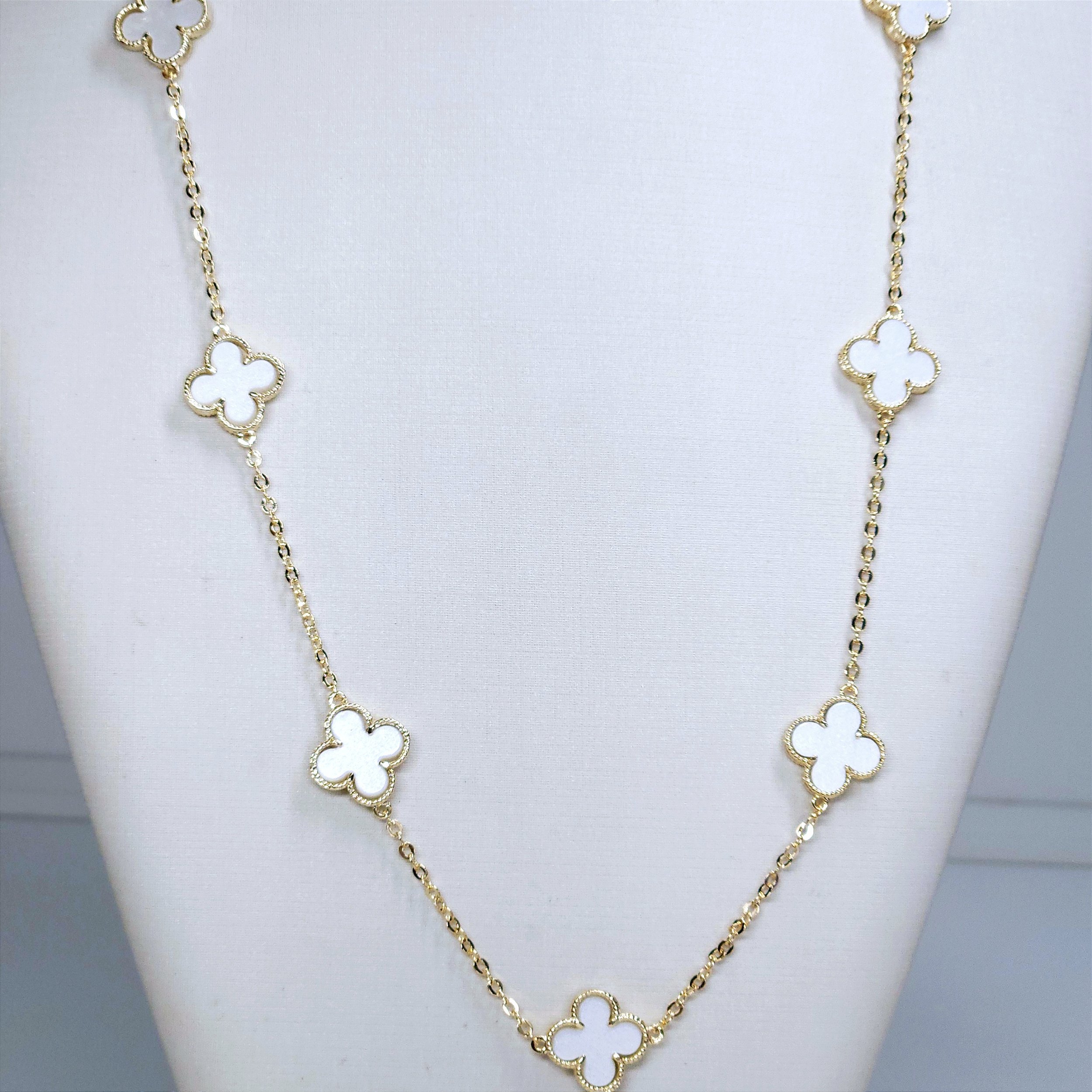 COLAR DOURADO TREVO DE 4 FOLHAS COR PEROLADA - 80CM + 8 EX