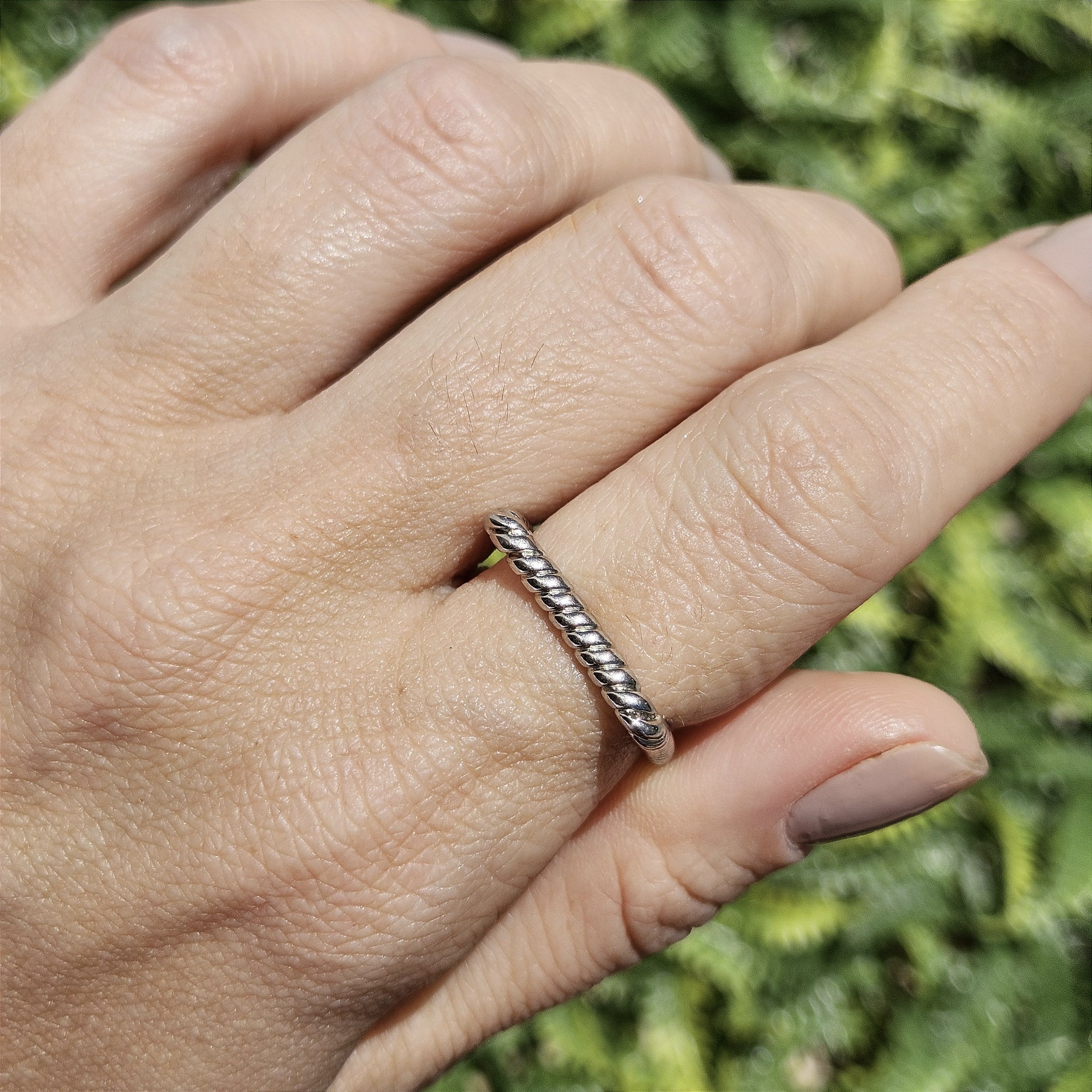 ANEL EM RÓDIO BRANCO QUADRADO TRABALHADO TORCIDO