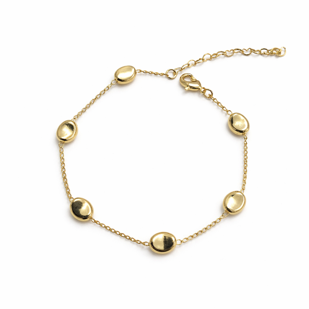 PULSEIRA DOURADA COM BOLINHAS OVAIS ACHATADAS E LISAS
