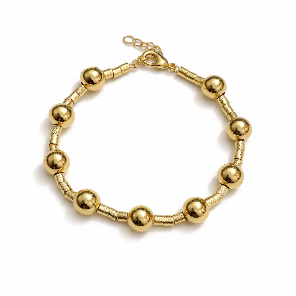PULSEIRA DOURADA COM CANUDINHOS E ESFERAS 17,5CM+5