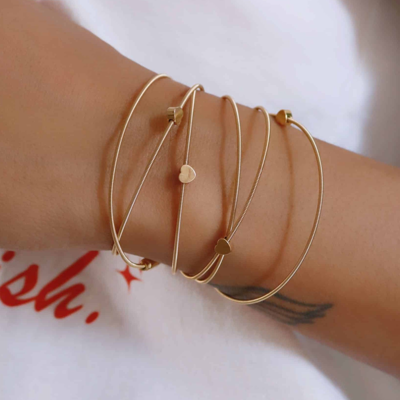 PULSEIRA DOURADA CORDA DE VIOLAO COM CORAÇÕES LISOS - FAZ VÁRIAS VOLTAS - FECHO IMÃ