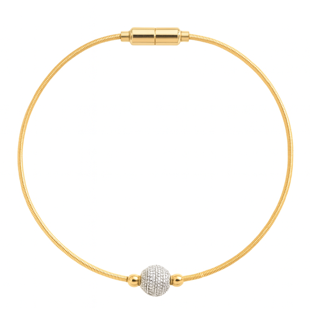 PULSEIRA DOURADA CORDA DE VIOLÃO COM UMA BOLINHA TODA CRAVEJADA - FECHO IMÃ