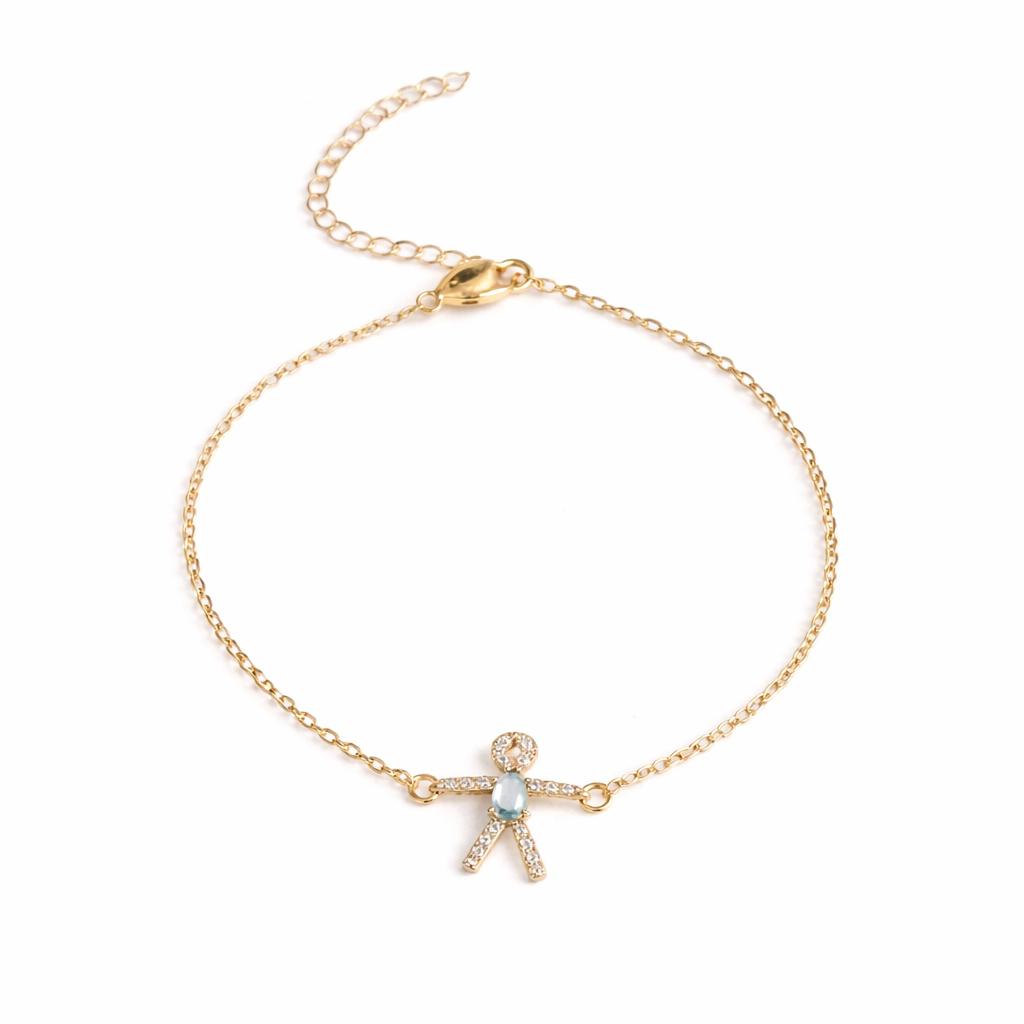 PULSEIRA DOURADA MENINO COM ZIRCÔNIAS BRANCAS E ROUPA PEDRA AZUL NO MEIO - 18CM + 5CM EXTENSOR