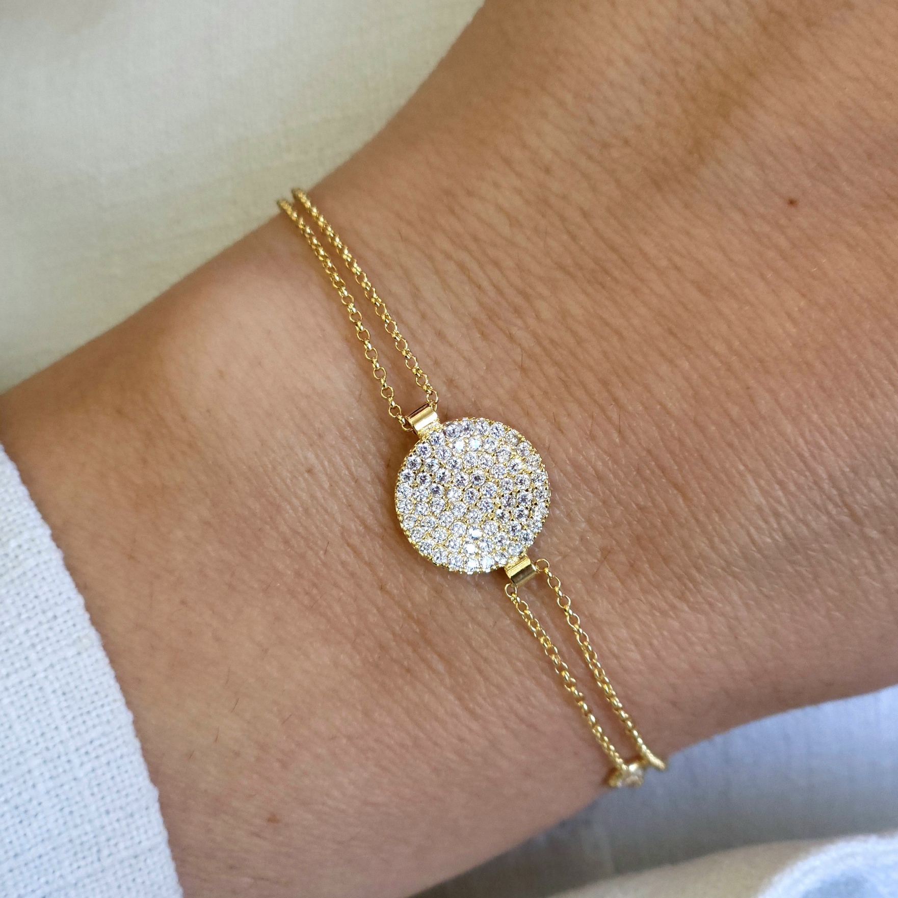 PULSEIRA DOURADA PINGENTE ORGÂNICO COM PEDRAS DE ZIRCÔNIAS BRANCAS - 18CM + EXTENSOR