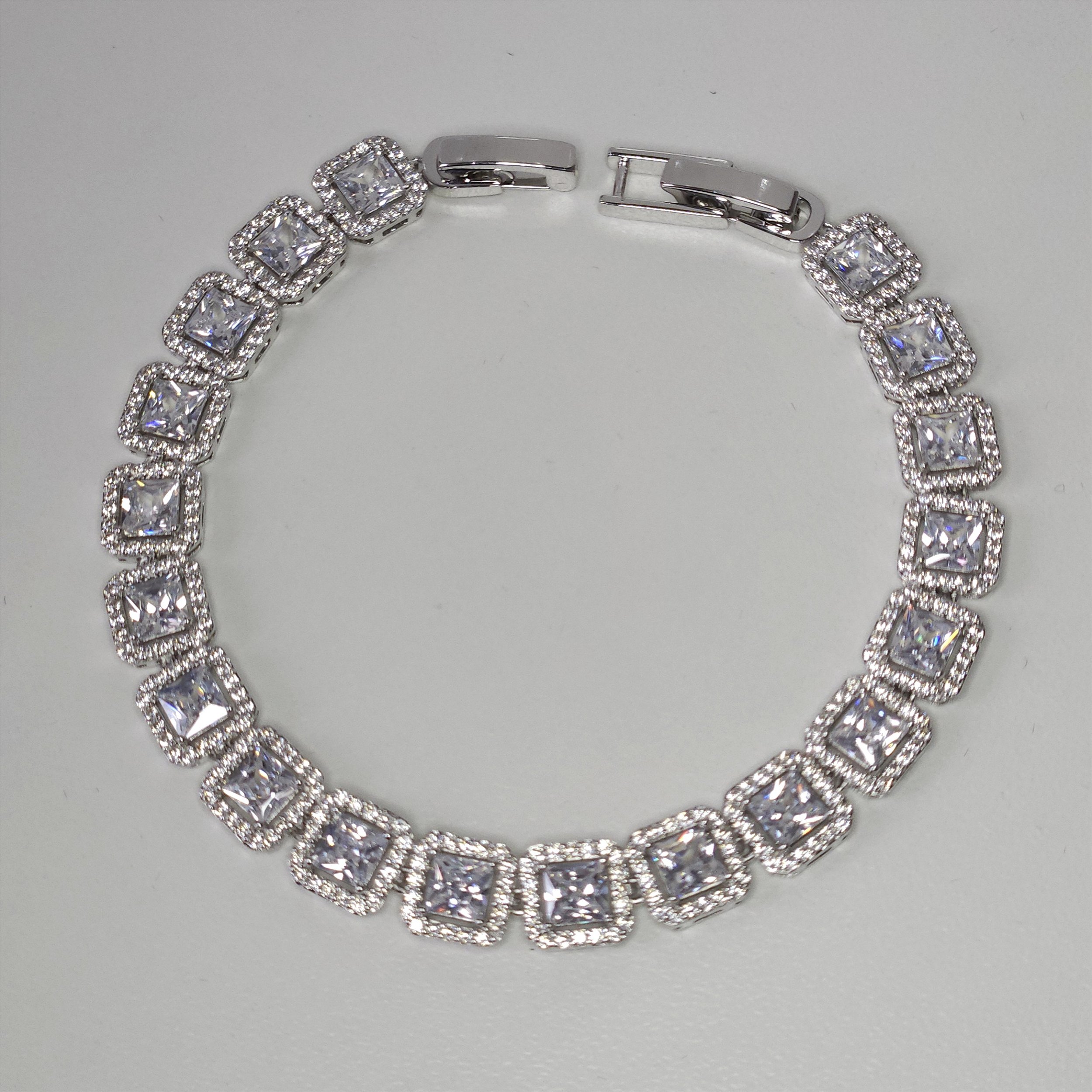 PULSEIRA EM RÓDIO BRANCO MODELO RIVIERA QUADRADA E MICRO ZIRCÔNIAS AO REDOR