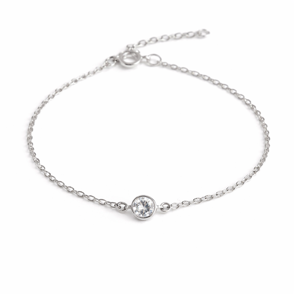 PULSEIRA PRATA DE ELOS COM 1 PEDRA DE ZIRCÔNIA REDONDA NO MEIO - 17CM + 2CM EXTENSOR