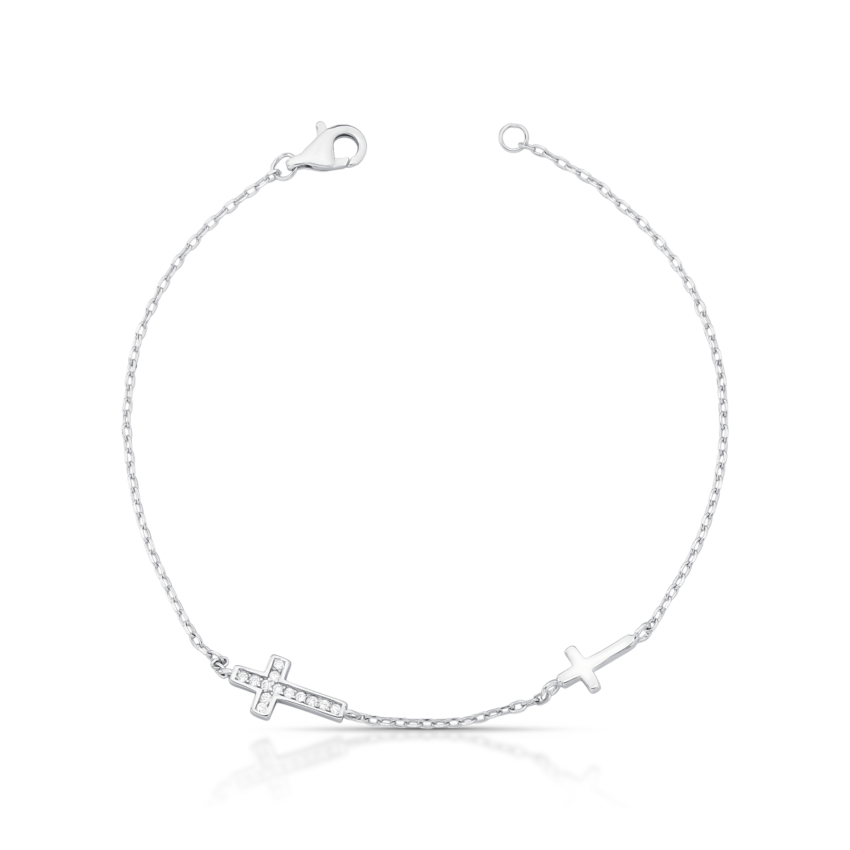 PULSEIRA PRATA ELOS COM CRUZ LISA E CRUZ CRAVEJADA - COM EXTENSOR