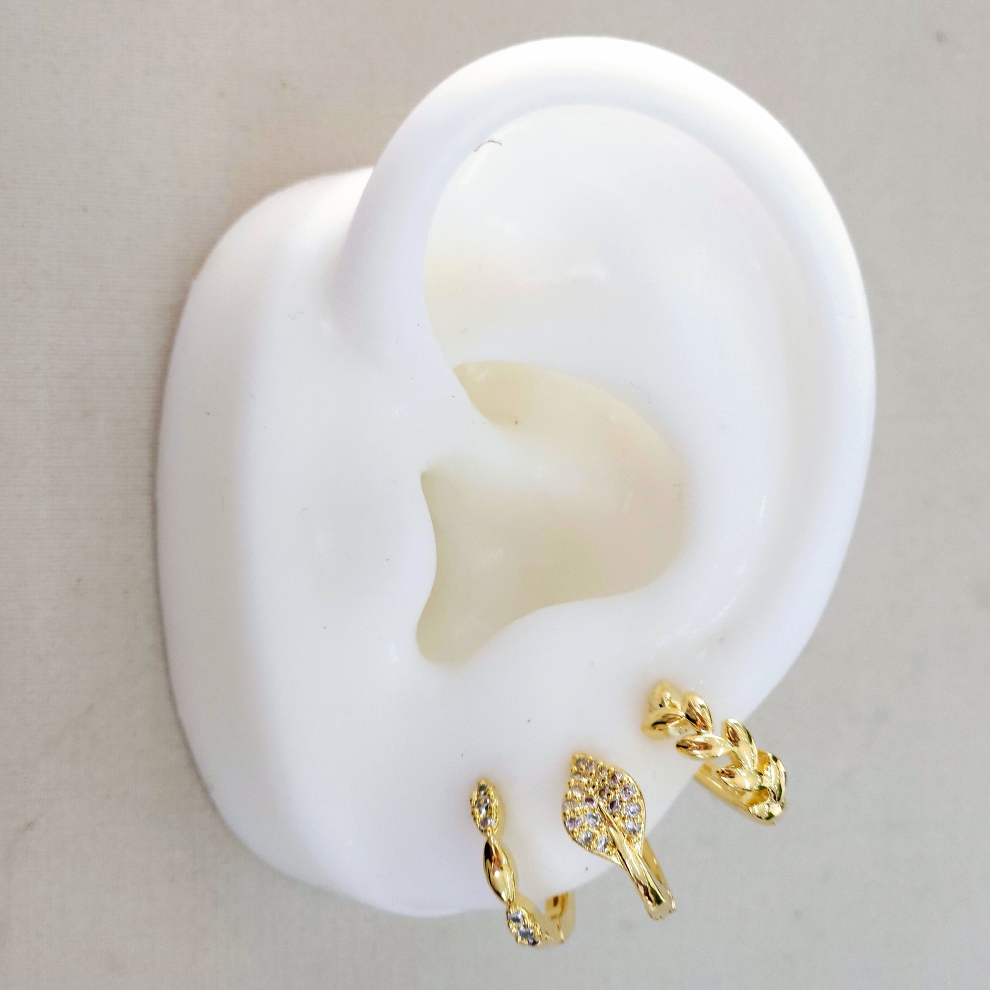 TRIO ARGOLAS DOURADAS - 3 MODELOS DIFERENTES - ENTRELAÇADAS, TORCIDAS COM PEDRAS, FIOS TRANÇADOS COM ZIRCÔNIAS