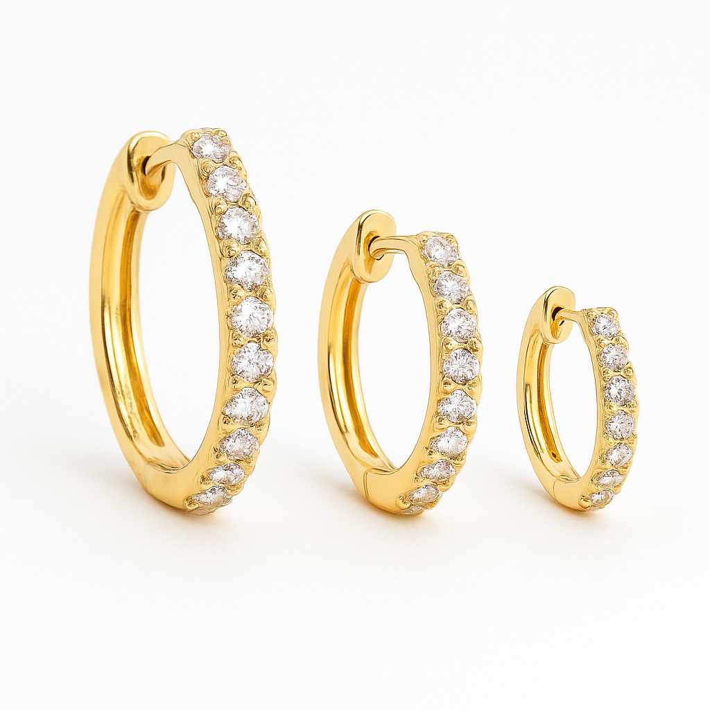 TRIO DE ARGOLAS DOURADAS COM PEDRAS DE ZIRCÔNIAS BRANCAS