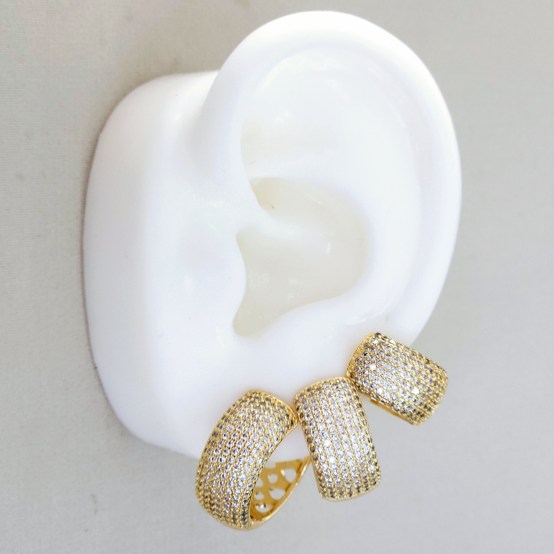 TRIO DE ARGOLAS DOURADAS DA MAIOR PARA MENOR LARGA COM 8 FIOS CRAVEJADOS